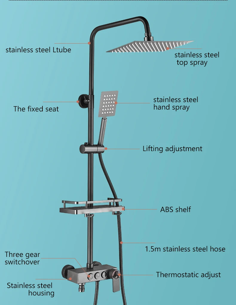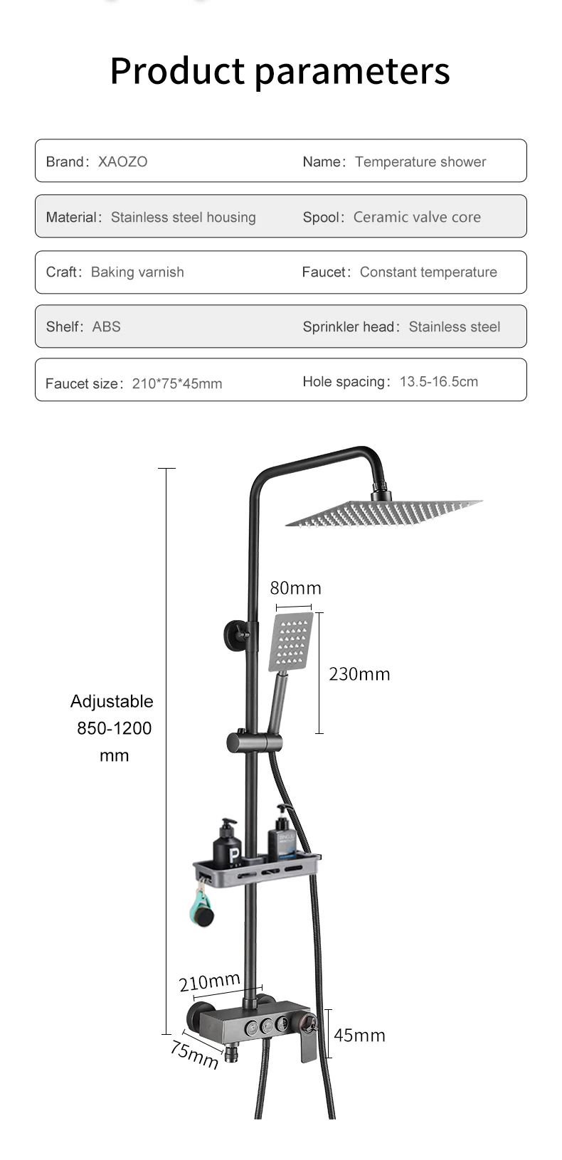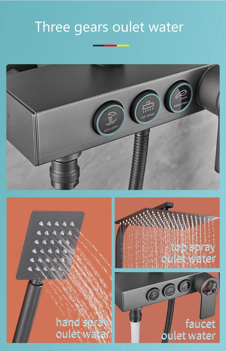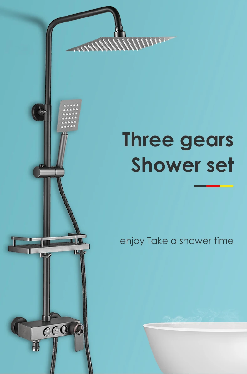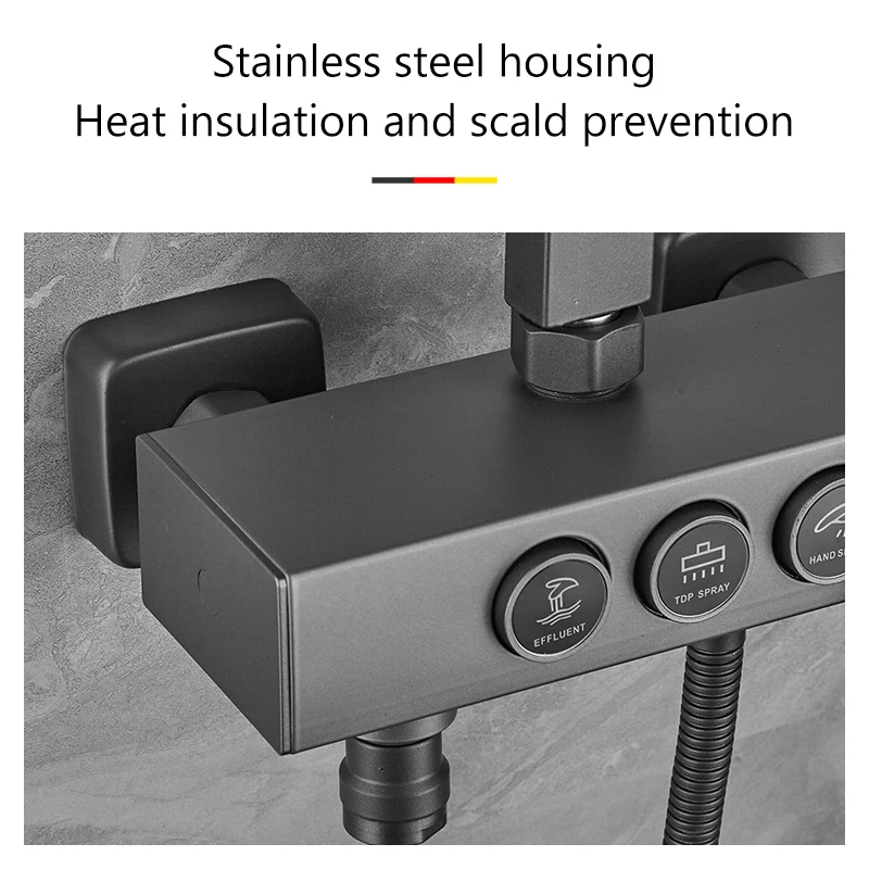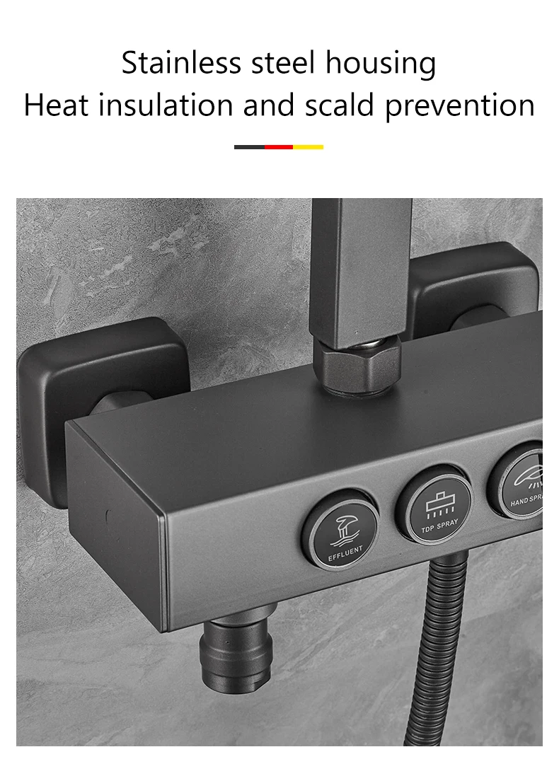 ชุดฝักบัวอาบน้ำสแตนเลสครัวเรือนห้องน้ำอุณหภูมิคงที่ปืนสีเทาแรงดันหัวฝักบัวห้องน้ำ