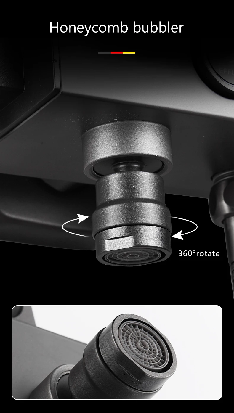 หัวก๊อกน้ำหมุนได้หลายหน้าที่สำหรับ ° หมุนได้, หัวฉีดแบบมีที่ระบายน้ำแบบคู่หัวก๊อกน้ำแบบหมุนเวียน