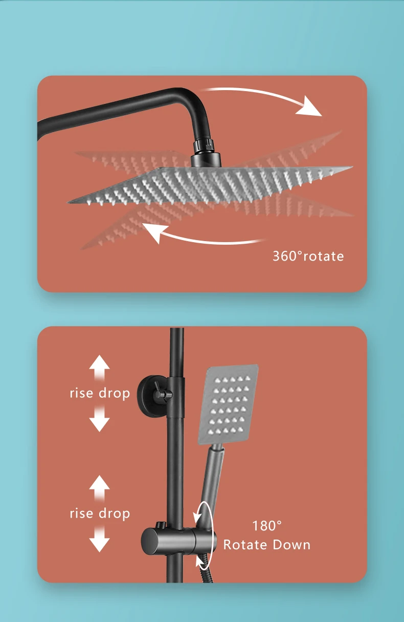 หัวฝักบัวสีดำ5โหมดปรับแรงดันสูงประหยัดน้ำหัวฝักบัวฝักบัวอาบน้ำเหนือศีรษะนวดน้ำอุปกรณ์เสริม
