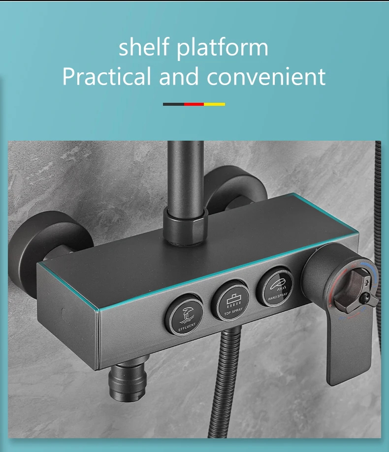 อุณหภูมิ LED ดิจิตอลจอแสดงผลชุดฝักบัวคอลัมน์ฝักบัวระบบร้อนเย็นพร้อมแสงโดยรอบห้องน้ําหัวฝักบัว