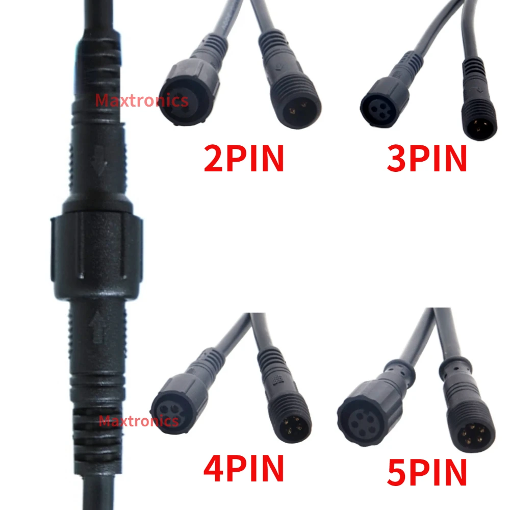 ขั้วต่อ LED กันน้ำ5/10คู่ตัวผู้กับตัวเมีย IP68ปลั๊กตัวแปลง2/3/4พิน/5Pin สายเคเบิลสีดำ20ซม. สำหรับโมดูลไฟแถบไฟ LED