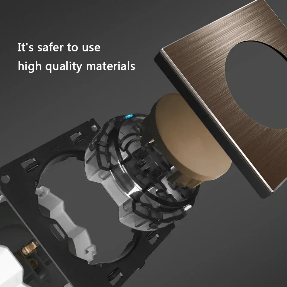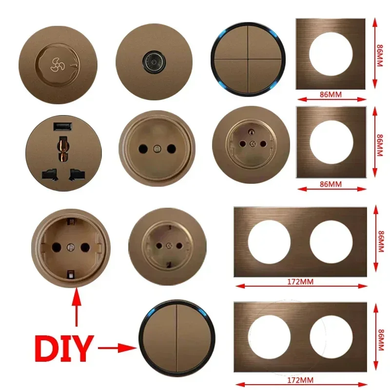 สีกาแฟคุณภาพสูง universal Retro Eu FR 220V สวิตช์ไฟผนัง, ปุ่มรีเซ็ตสวิทช์ซ็อกเก็ตไฟฟ้าพร้อมไฟ LED