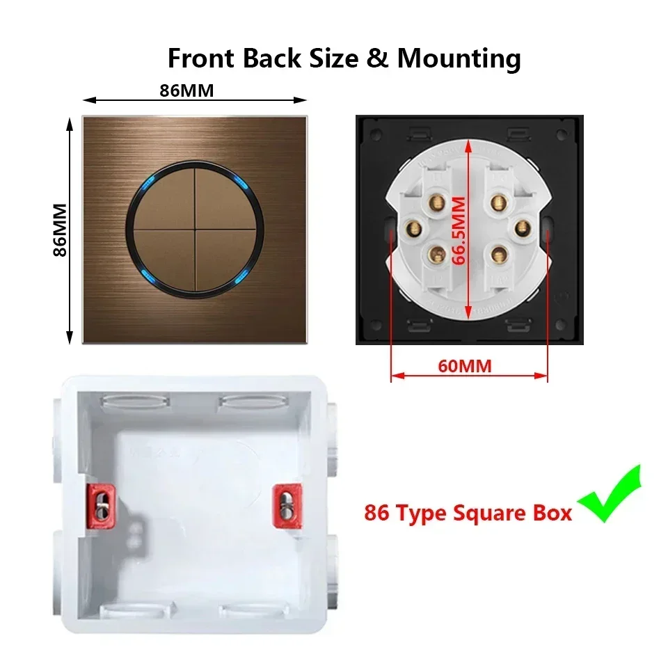 Square product size: 86mm*86mm mounting screw hole distance: 60mm rectangular product size: double universal socket for 146mm*86mm double European socket for 172mm*86mm product material for aluminum panel material, steel frame structure