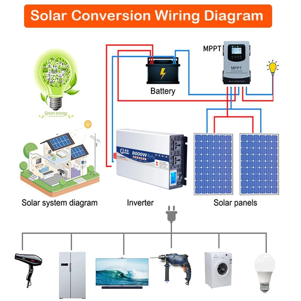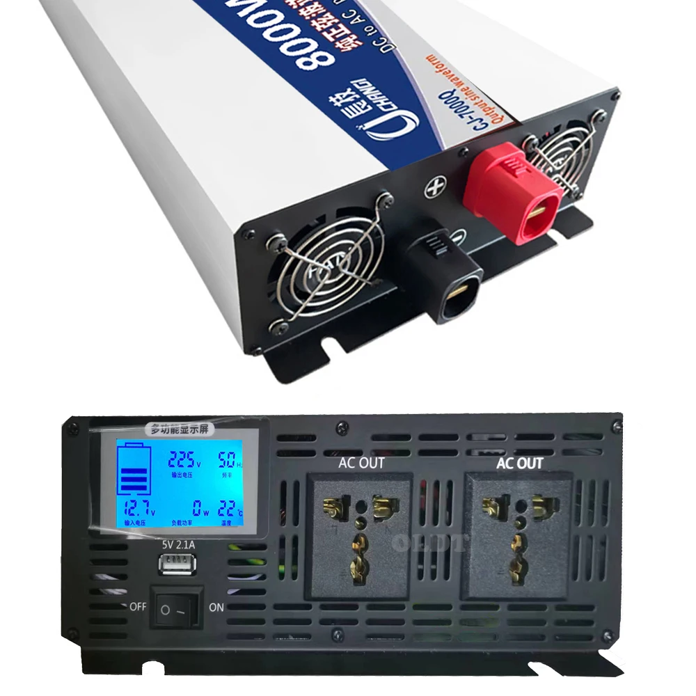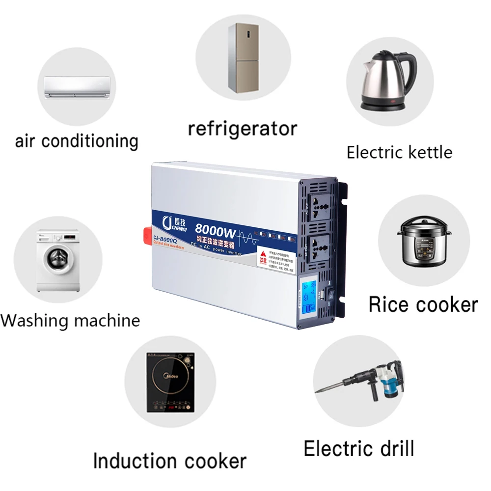 อินเวอร์เตอร์ 12V 24V 48V 60V ถึง AC 110V 220V 6000W 8000W 12000W อินเวอร์เตอร์ Pure Sine Wave พลังงานแสงอาทิตย์ Car Charger แหล่งจ่ายไฟสําหรับบ้านและ RV