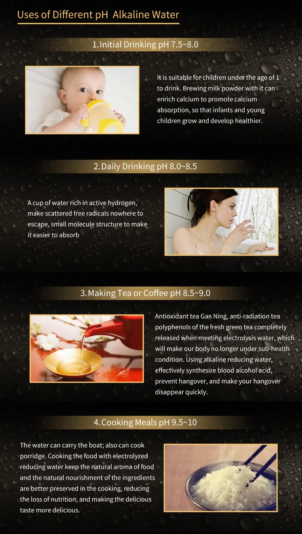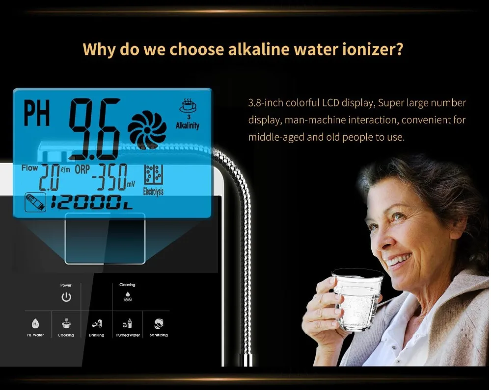 คุณสมบัติเพิ่มเติม: 110V ~ 240V พลังงานสากล/ผลิต3.0น้ำถึง11.0 / + 500เพื่อ800mV ระดับ ORP/ทำให้น้ำ TDS จาก50ถึง1500PPM/ขนาดใหญ่สุด3.8นิ้วหน้าจอหน้าจอ LCD ที่มีสีสัน/ผ่านการรับรอง wqa และการรับรอง NSF ในอเมริกา/100% เสนอการคืนเงินหากคุณไม่พอใจกับผลิตภัณฑ์