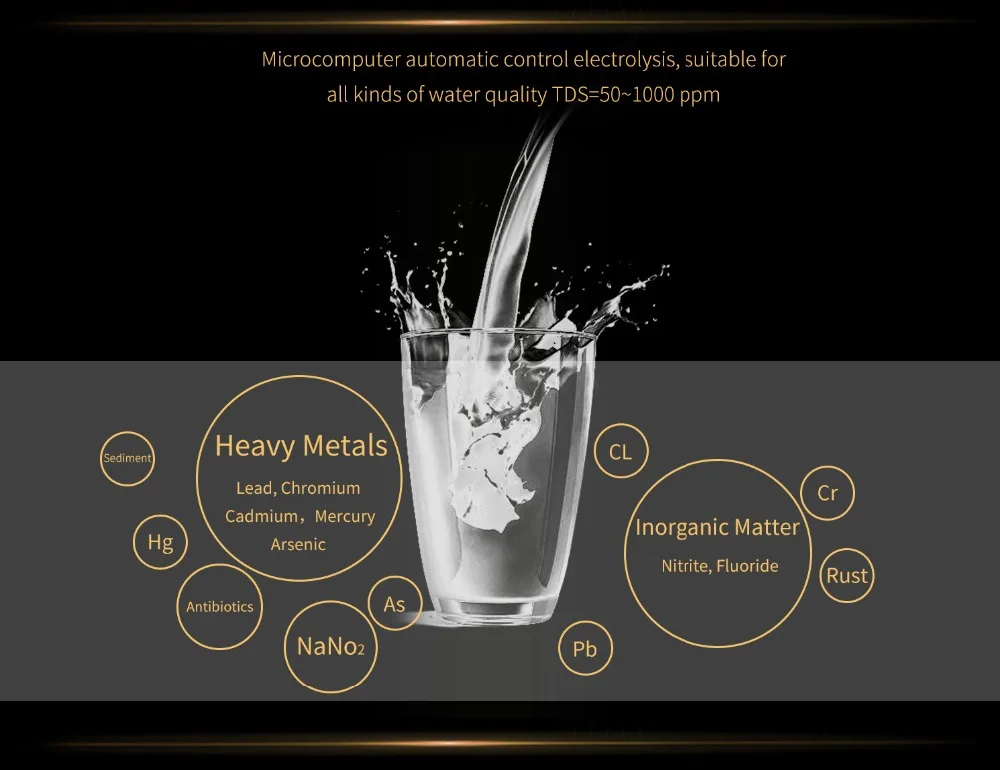 3.การอิเล็กโทรไลซิสกับระบบควบคุมอัตโนมัติไมโครคอมพิวเตอร์สามารถทำงานได้อย่างสมบูรณ์แบบในน้ำ TDS ตั้งแต่50ถึง1200PPM