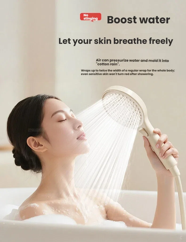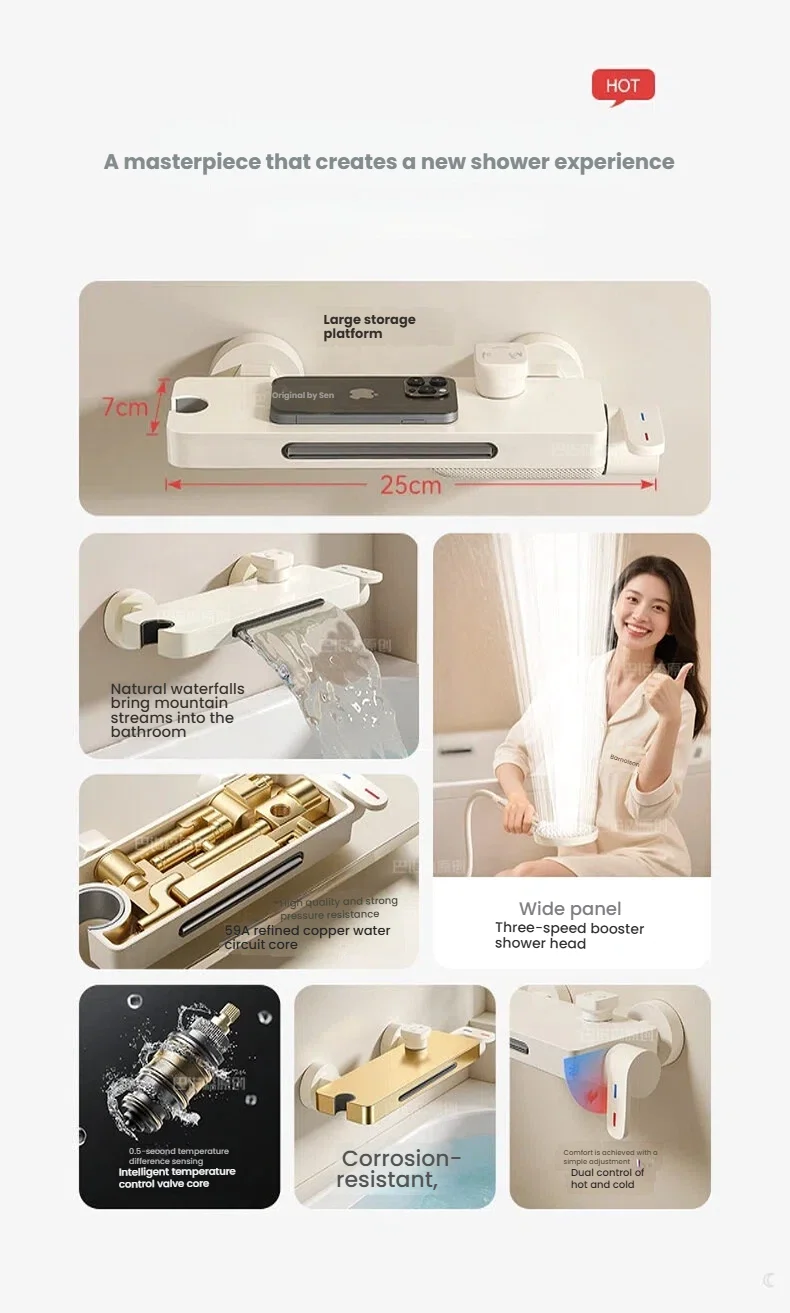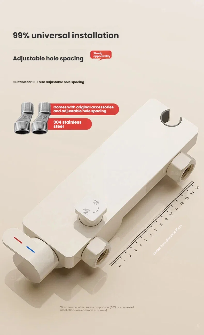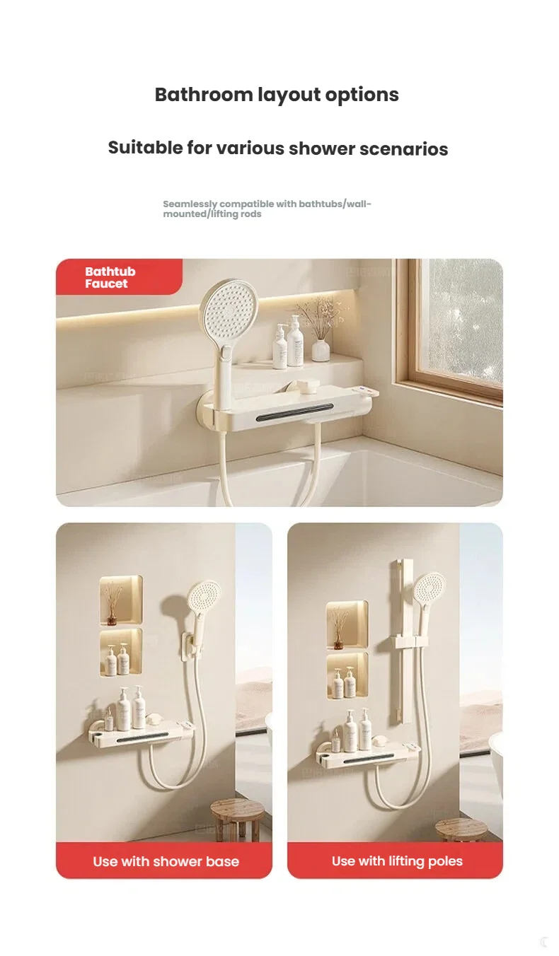 ก๊อกน้ำตกอ่างอาบน้ำสีขาวนม พร้อมปุ่มควบคุมการไหลของน้ำแบบแรง สำหรับเปลี่ยนระหว่างน้ำร้อนและน้ำเย็น ชุดฝักบัว