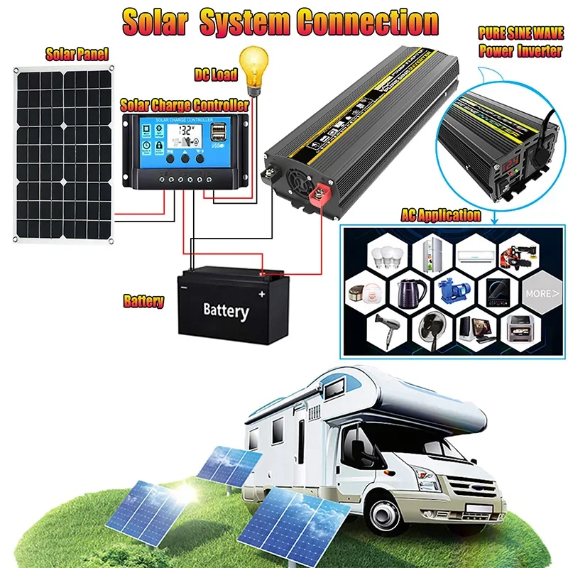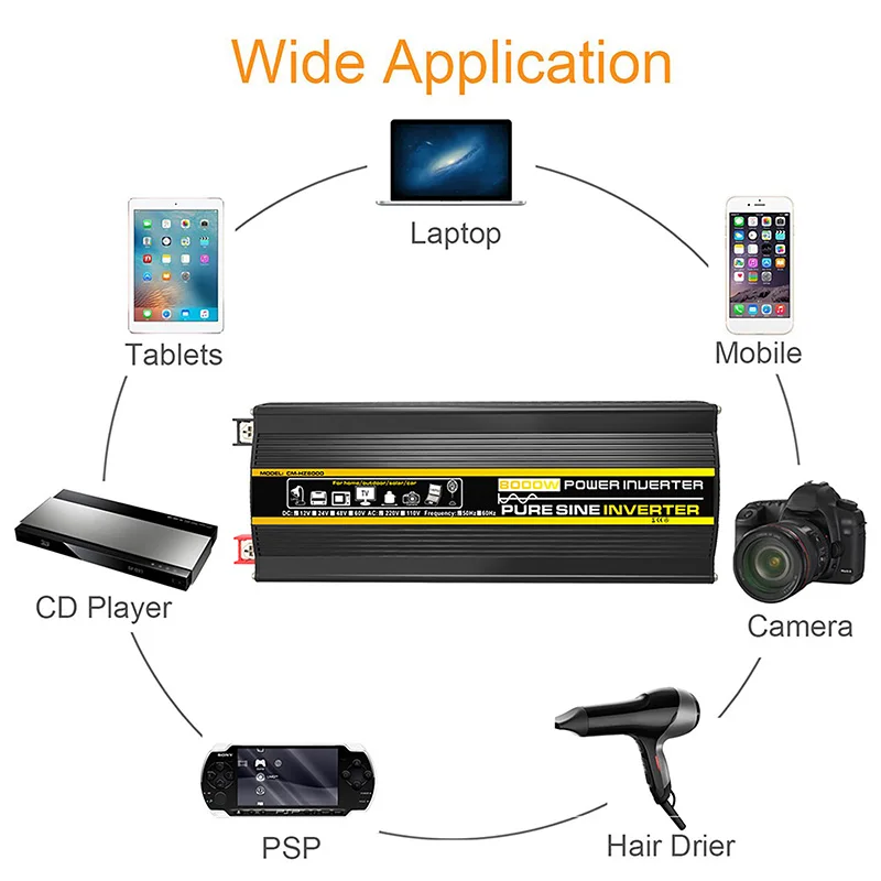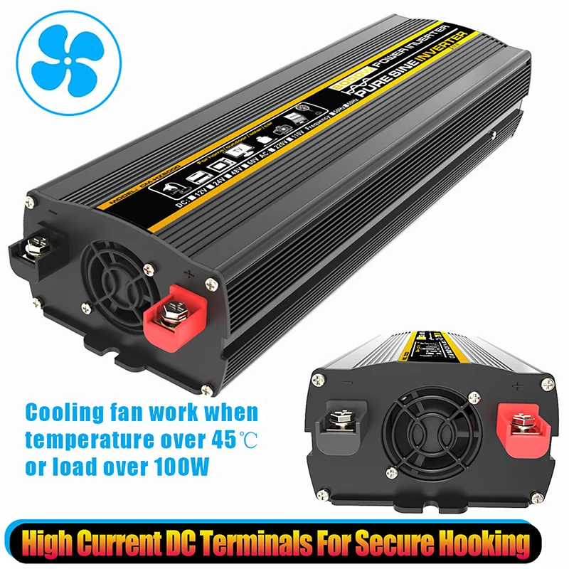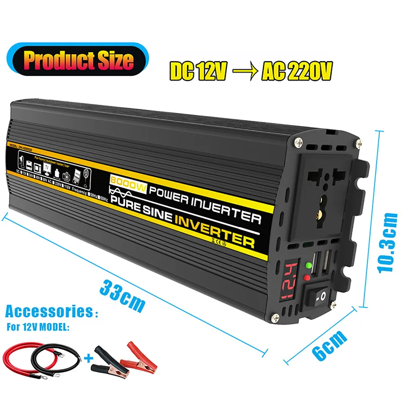 อินเวอร์เตอร์คลื่นไซน์บริสุทธิ์แบบพกพา เครื่องแปลงไฟ 3000W-8000W DC 12V เป็น AC 220V สำหรับใช้ในรถยนต์ บ้าน และกลางแจ้ง ใช้กับพลังงานแสงอาทิตย์