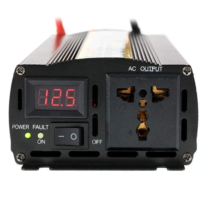 [คลื่นไซน์บริสุทธิ์] แปลงไฟบ้าน 12V DC เป็น AC 220V พร้อมเอาต์พุต 1000 วัตต์ต่อเนื่อง (ความสามารถในการพุ่งสูงสุด 6000 วัตต์) พร้อมเต้ารับ AC 1 ช่อง, จอแสดงแรงดันไฟ LED หนึ่งจอ, ขั้วต่อ DC กระแสสูง และไฟทำงาน LED สองดวง(โปรดตรวจสอบให้แน่ใจว่ากำลังไฟรวมของอุปกรณ์ที่เชื่อมต่อคือ ≤ 1000W)