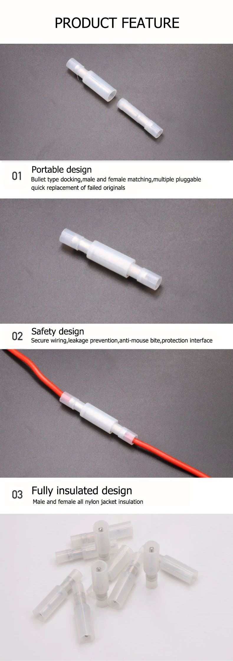 จริงๆ 60 ชิ้นชายหญิงขั้วต่อจีบสีแดงขั้วต่อสายไฟไนลอนขั้วต่อกระสุน