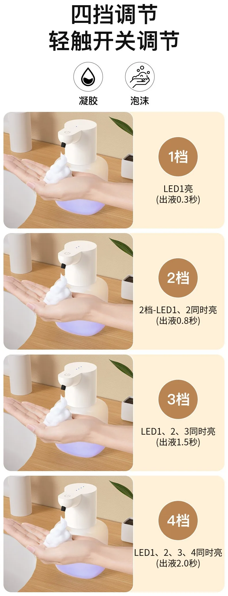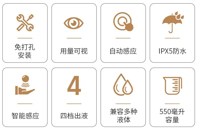 1、 การจ่ายอัตโนมัติ: เครื่องจ่ายจะจ่ายสบู่โดยอัตโนมัติโดยไม่จำเป็นต้องปั๊มด้วยตนเอง ทำให้สะดวกและใช้งานง่าย