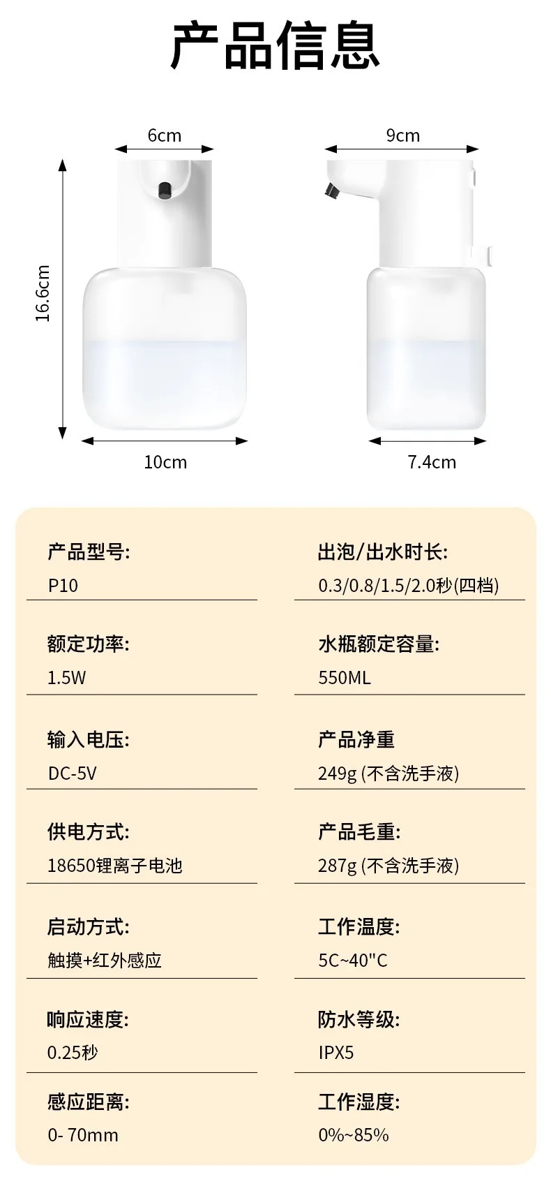 P6 เครื่องจ่ายสบู่อัตโนมัติแบบเหนี่ยวนำ เครื่องจ่ายสบู่ล้างมือแบบโฟมอัจฉริยะ เครื่องจ่ายสเปรย์แอลกอฮอล์สำหรับล้างมือ