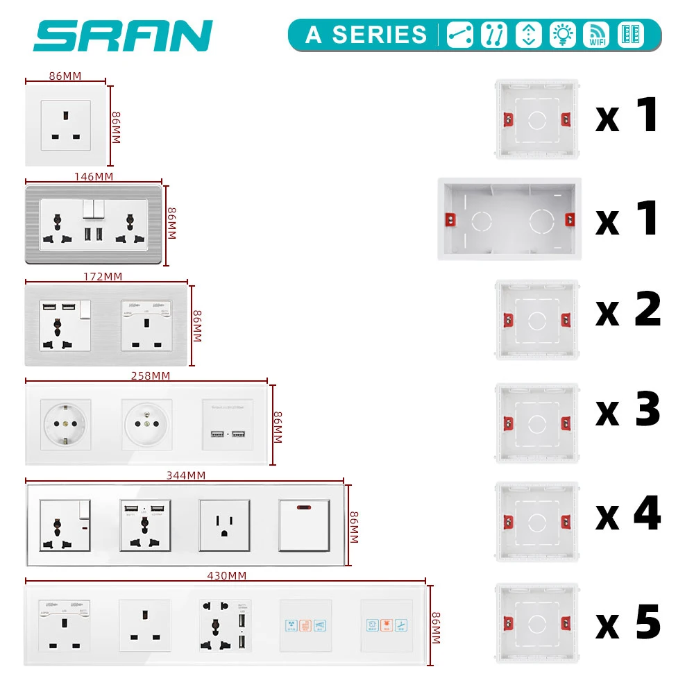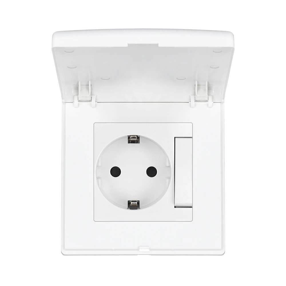 SRAN เต้ารับมาตรฐาน EU พร้อมฝาครอบกันฝุ่นและฝาครอบกันน้ํา เต้ารับไฟฟ้าติดผนัง PC สีขาวสําหรับห้องครัวห้องน้ํา