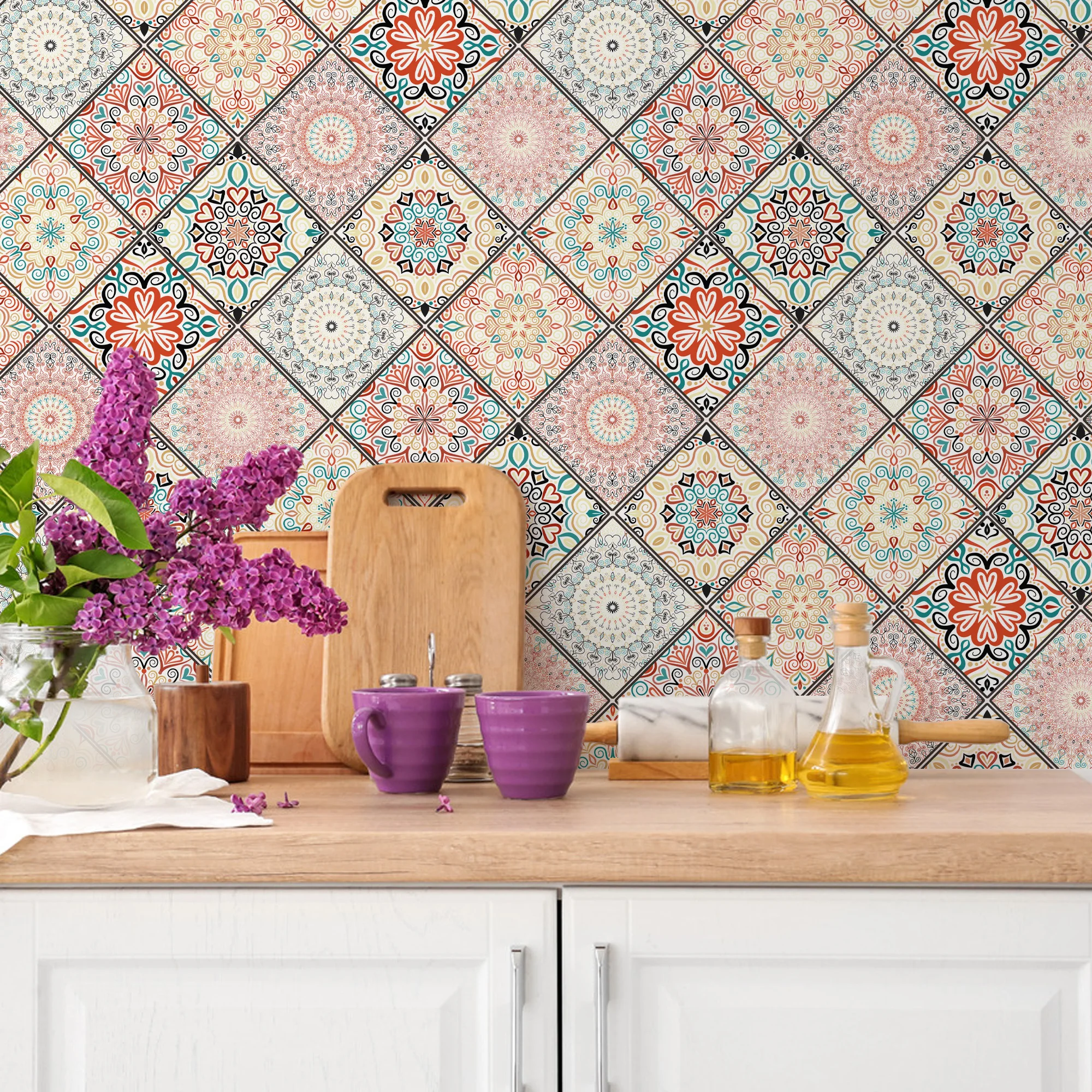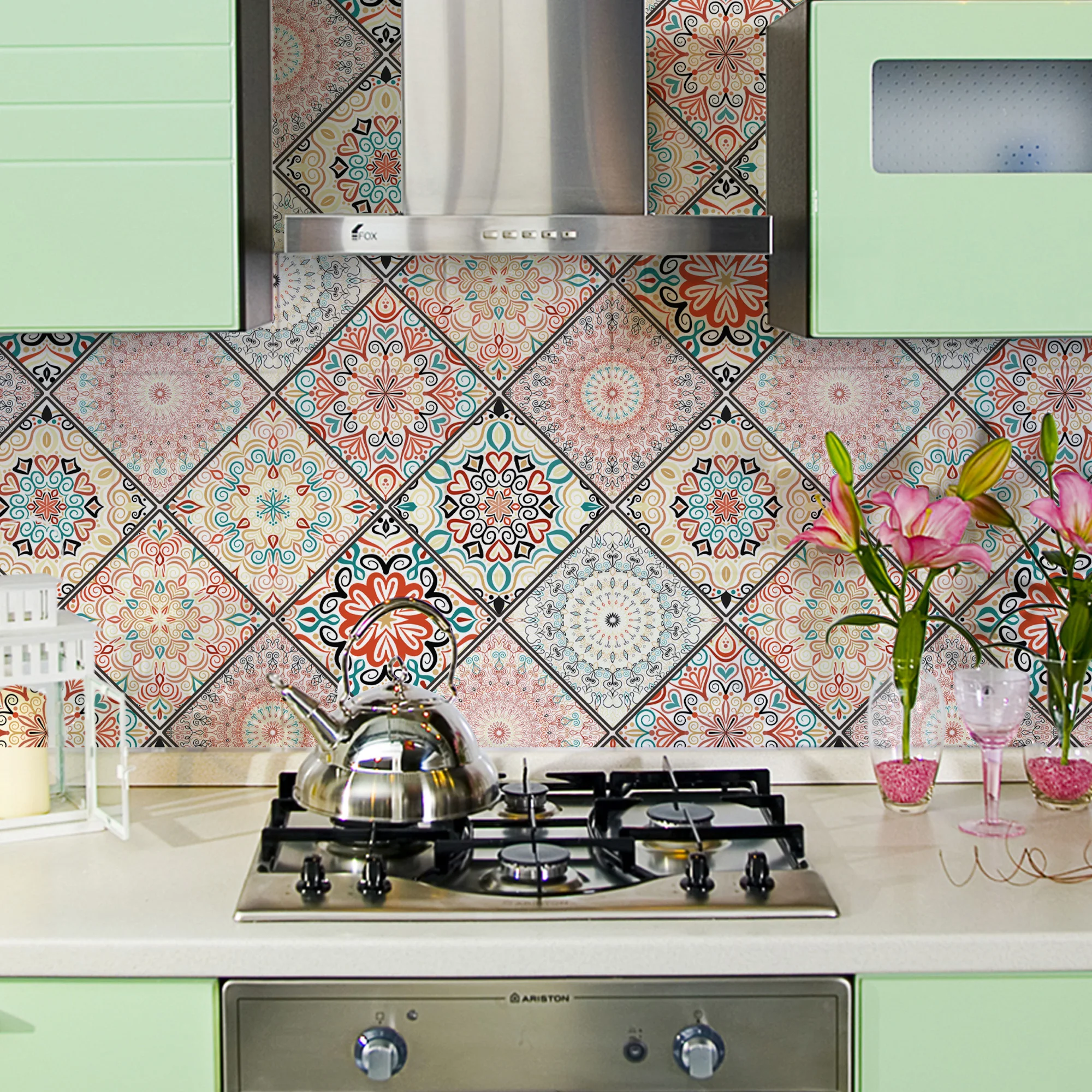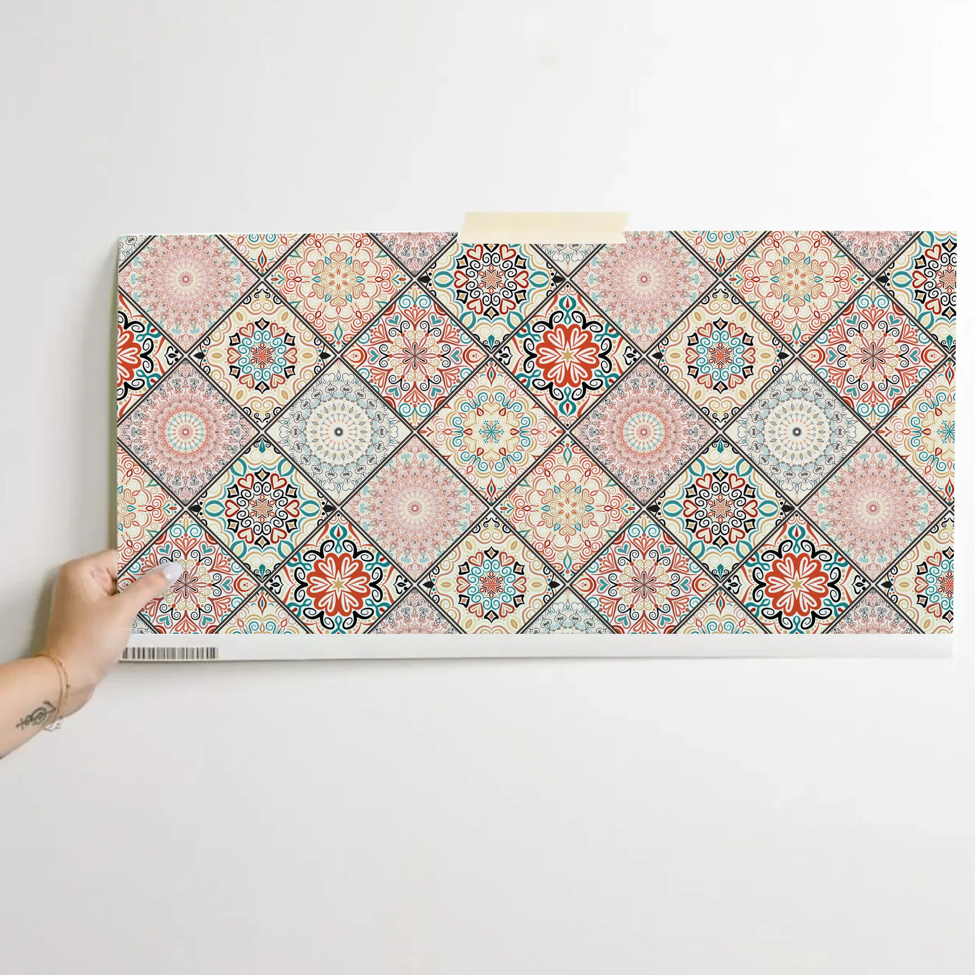 วอลเปเปอร์ลายแมนดาลา พอร์เชีย โมร็อกโก สไตล์โมเดิร์น แบบติดเอง กระเบื้องติดผนัง DIY กันน้ำ กันน้ำมัน สำหรับห้องครัว
