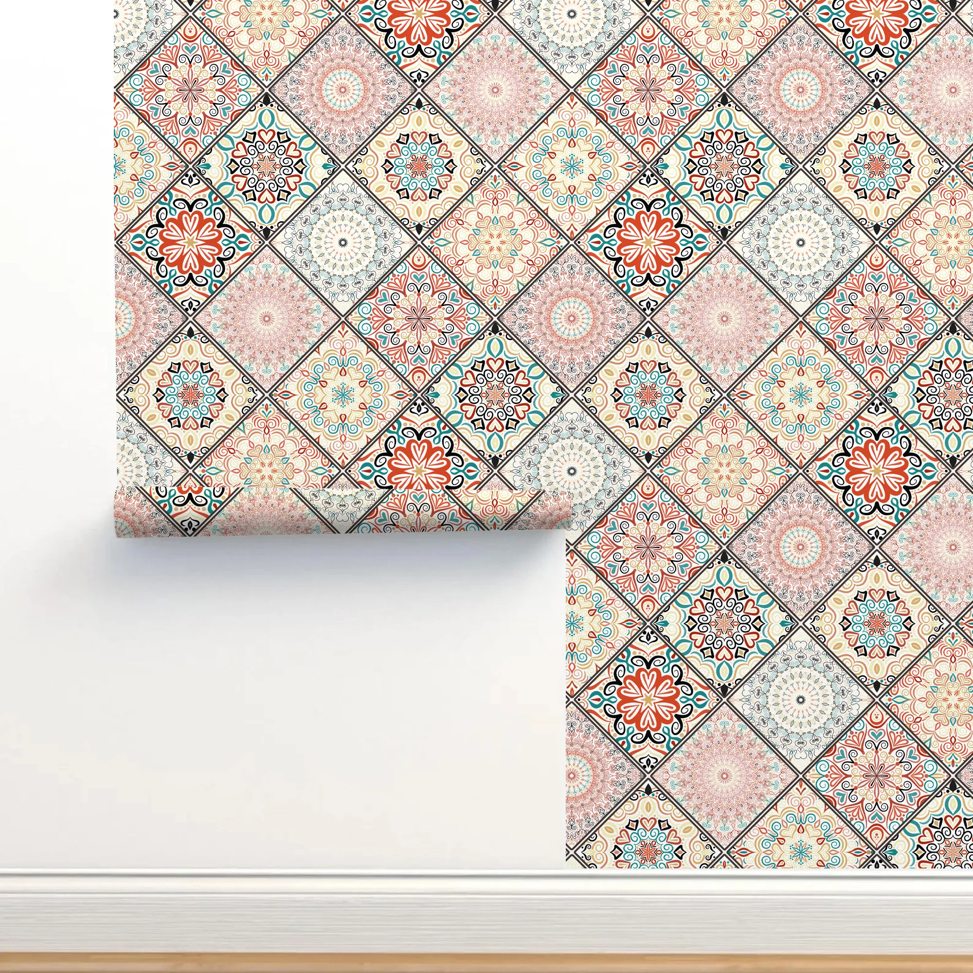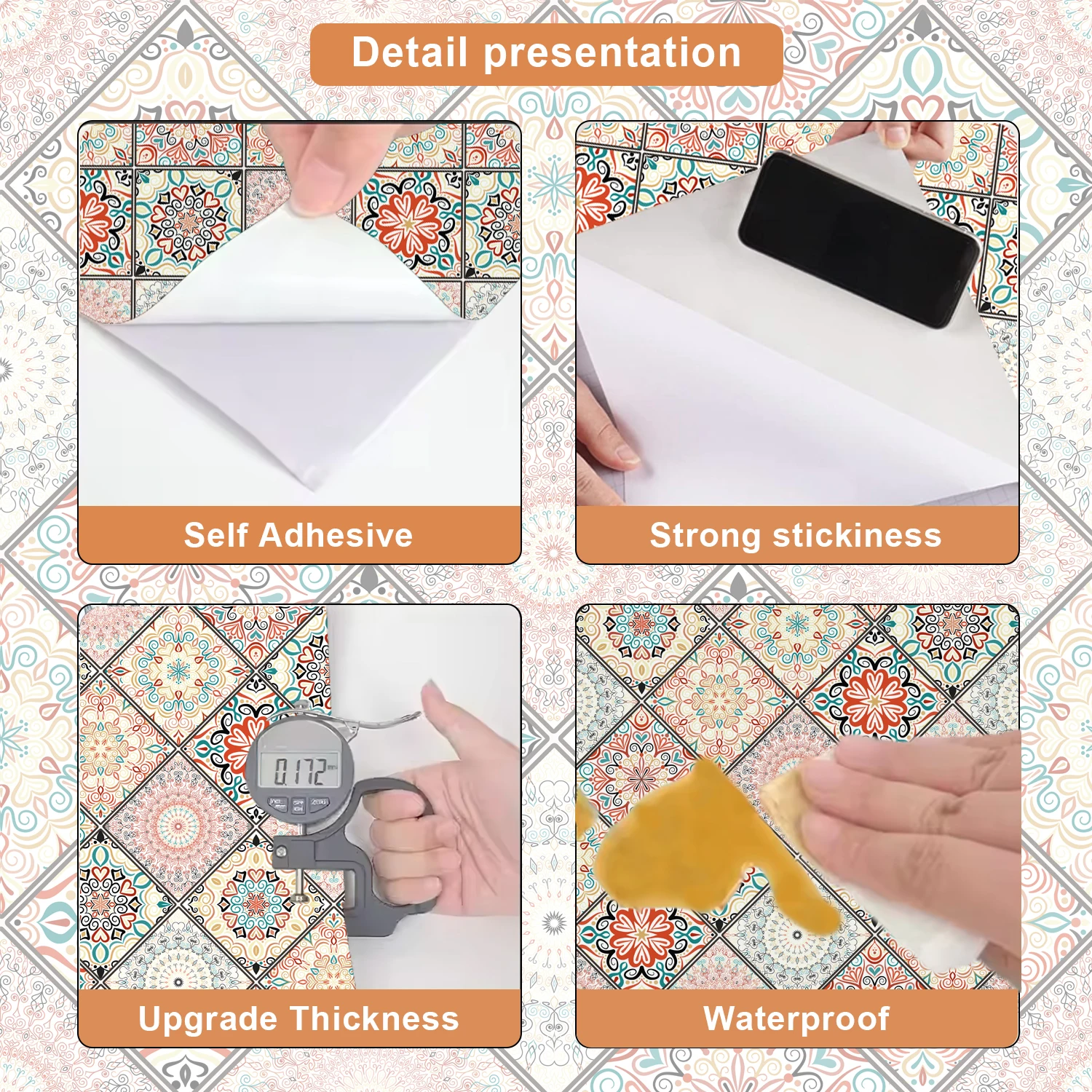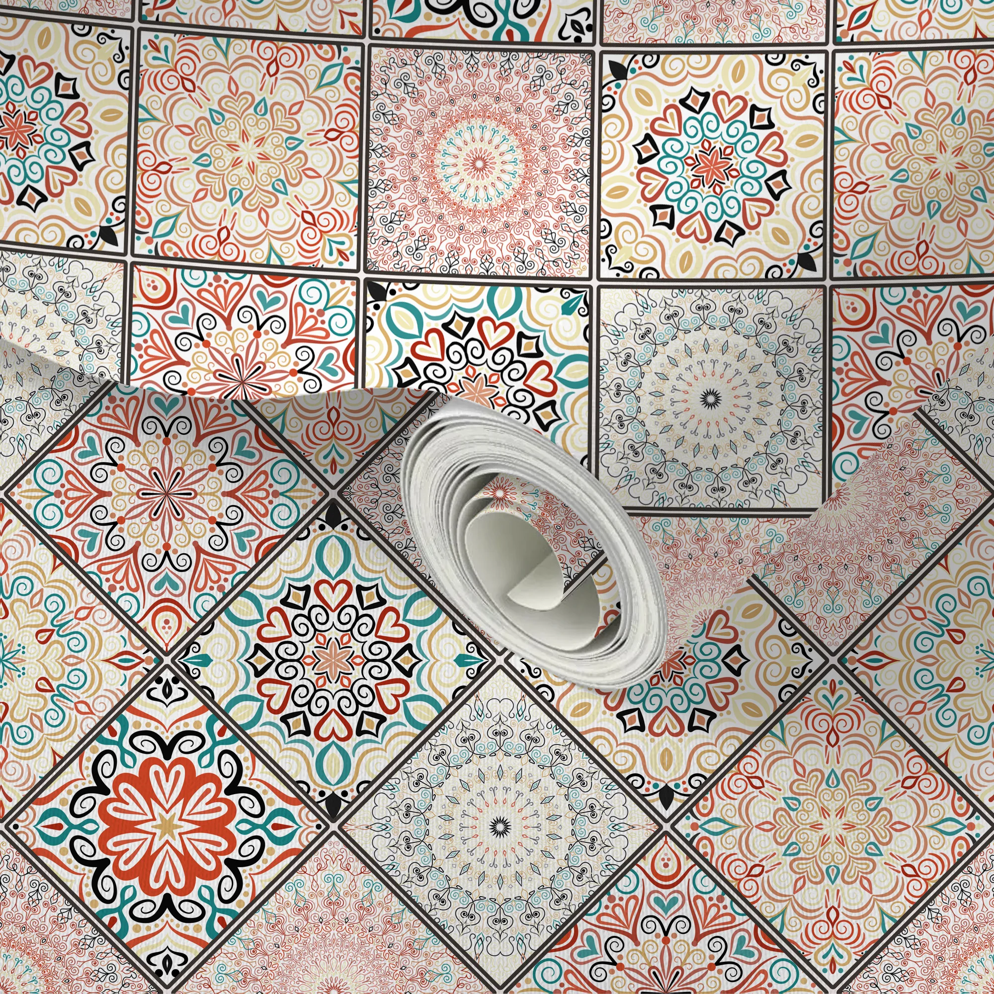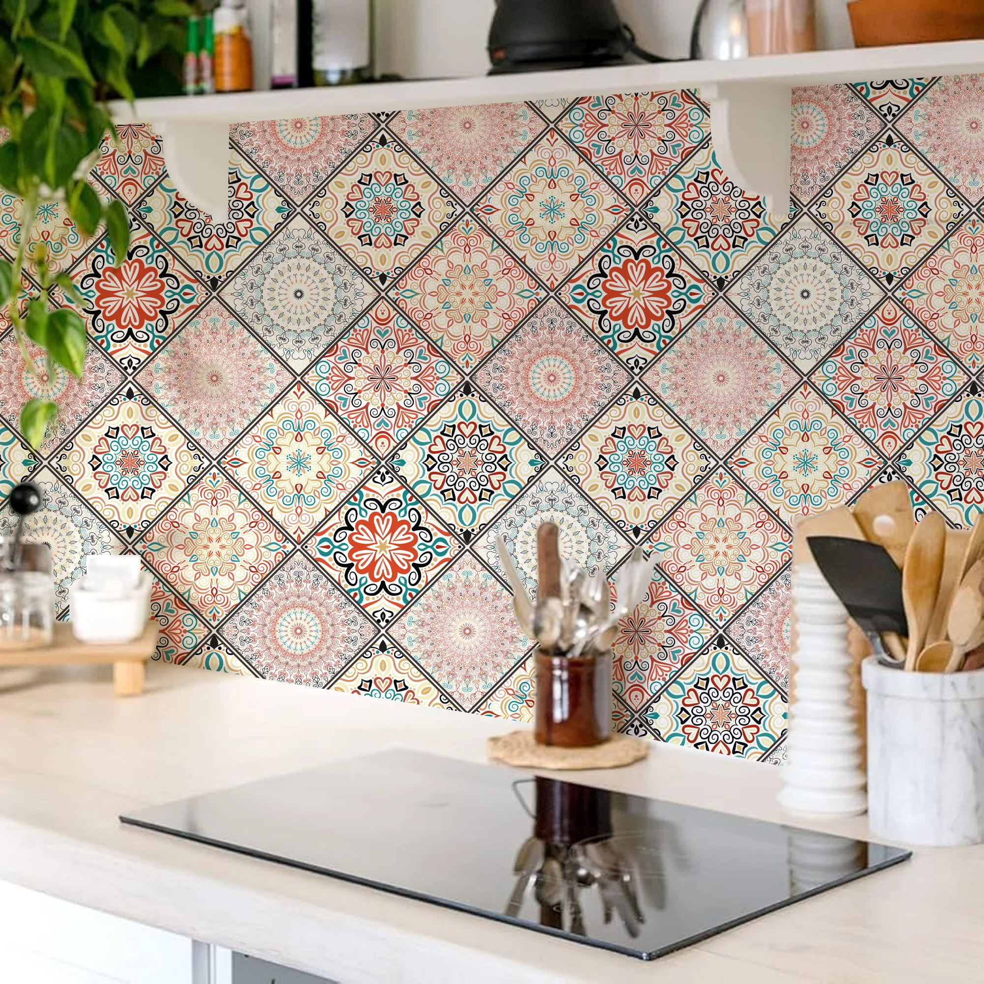วอลเปเปอร์ลายแมนดาลา พอร์เชีย โมร็อกโก สไตล์โมเดิร์น แบบติดเอง กระเบื้องติดผนัง DIY กันน้ำ กันน้ำมัน สำหรับห้องครัว