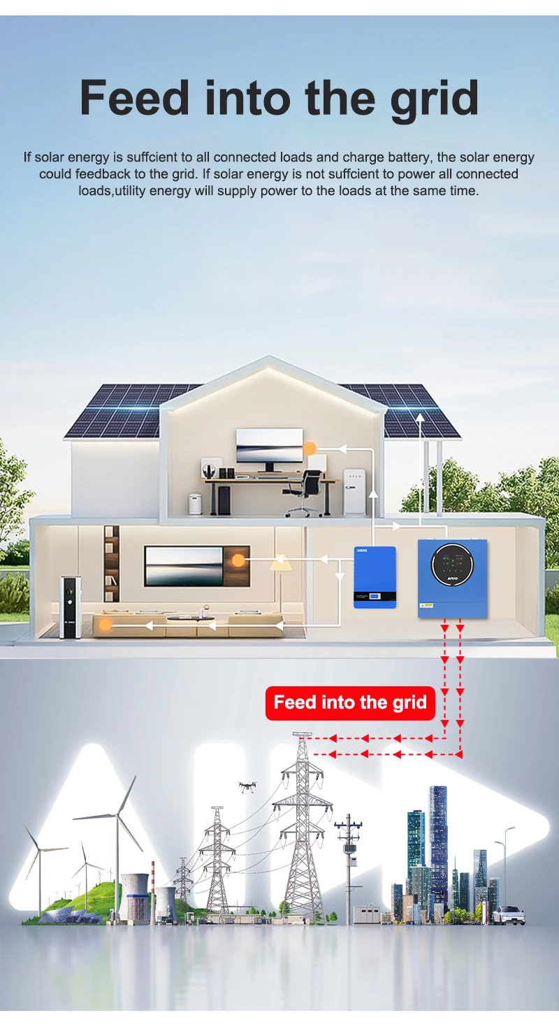 แผงโซล่าเซลอินเวอร์เตอร์ MPPT เฟสเดียว6KW 3KW กันน้ำ IP65สวิตช์ WiFi DC limiter ป้องกันการย้อนกลับ
