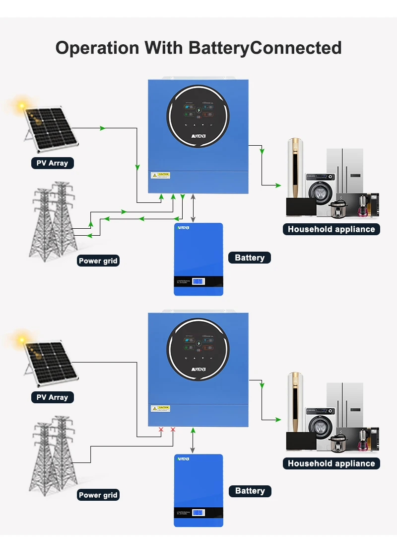 ANENJI 5KW 48V Hybrid อินเวอร์เตอร์พลังงานแสงอาทิตย์ 220V/230VAC MPPT 100A ในตัว WIFI อินเวอร์เตอร์ Dual เอาต์พุต Pure Sine Wave PV 500V เปิด/ปิดตาราง