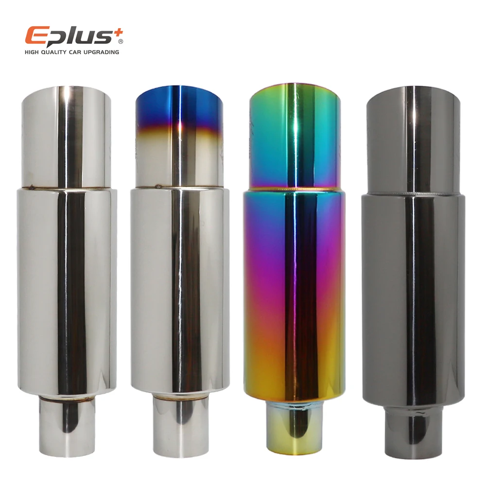ท่อไอเสียรถยนต์สแตนเลสท่อตรงกลองท่อไอเสียท่อคุณภาพสูง Universal O.D 51 57 63 มม.89 มม.ความยาว 370 มม.