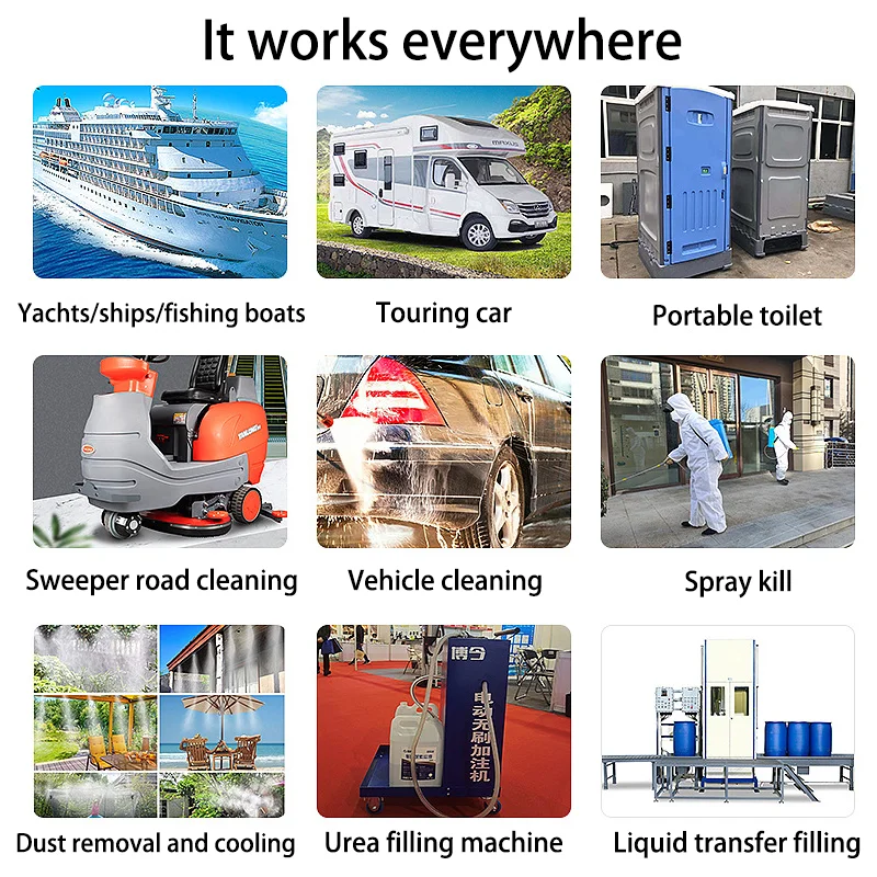 ใช้กันอย่างแพร่หลายในสนามหญ้า สวน ทําความสะอาดยานพาหนะ เรือ ทําความสะอาดพรม ทําความสะอาดพื้น ทําน้ําให้บริสุทธิ์ และอุปกรณ์บําบัดน้ํา
