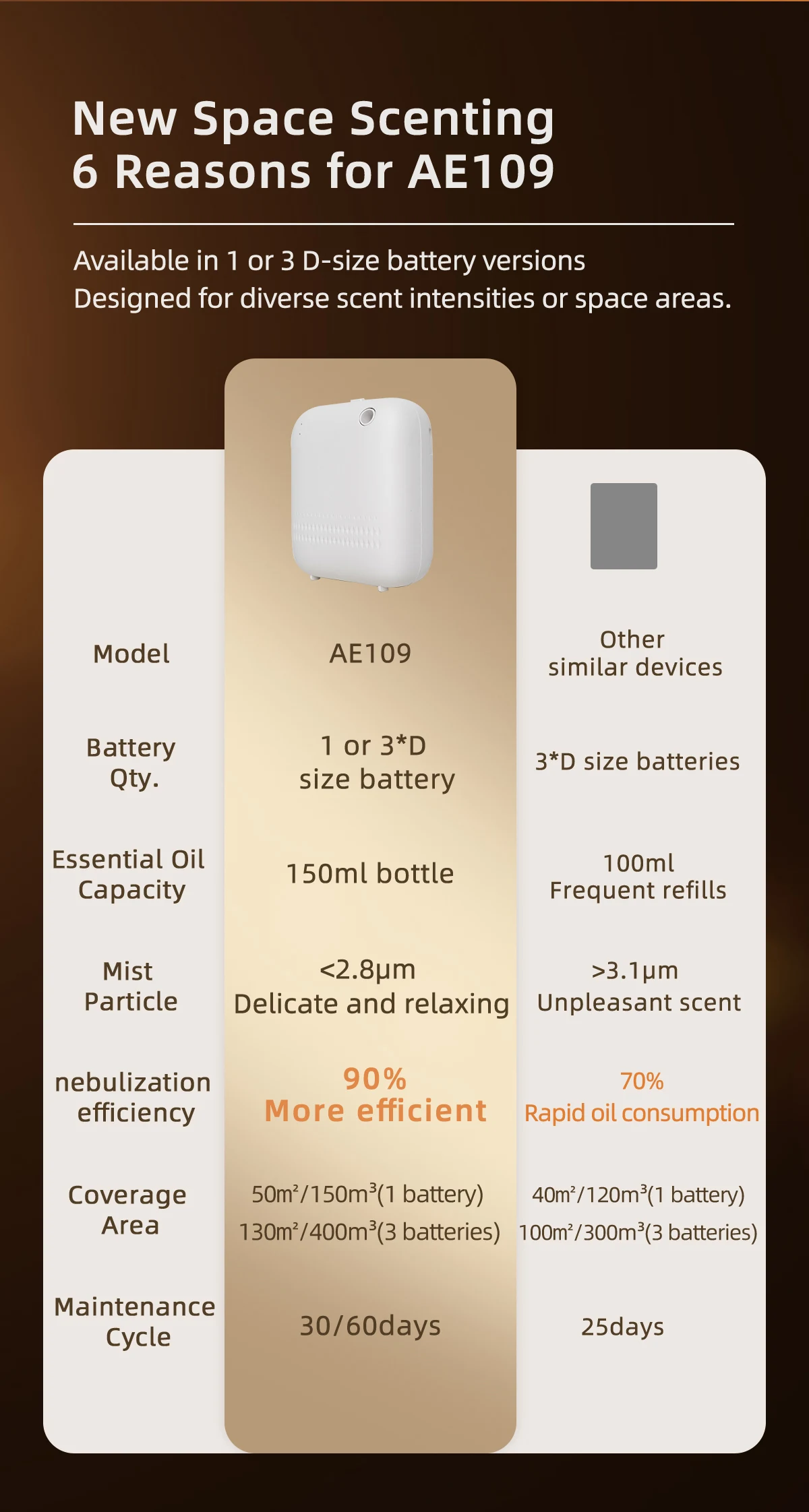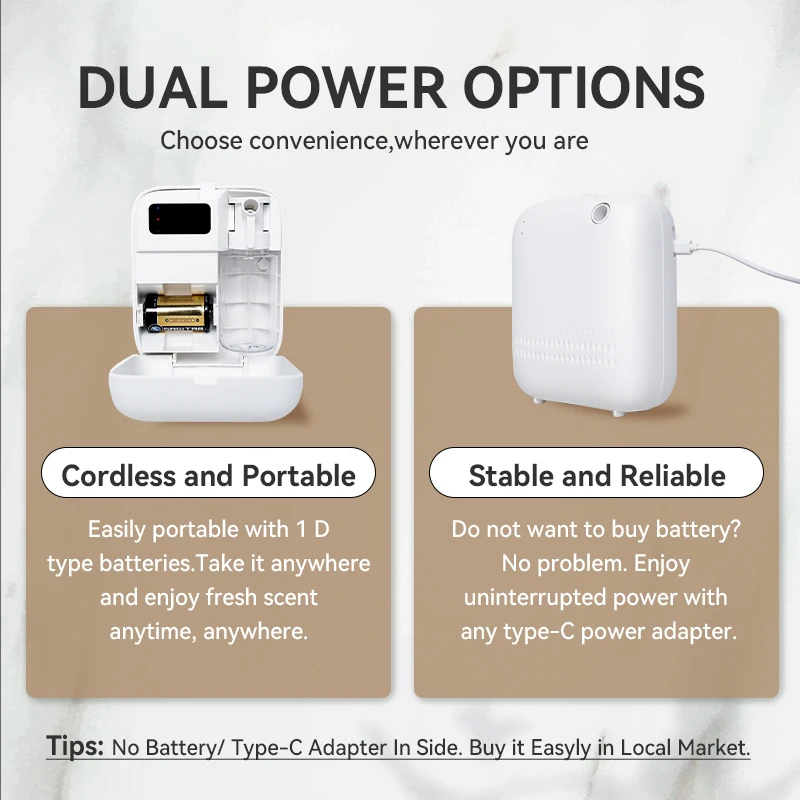 เพิ่มพื้นที่ของคุณให้สูงสุดด้วยเครื่องกระจายน้ำมันหอมระเหยไร้สายอันทรงพลังของเรา เหมาะสำหรับห้องขนาดใหญ่ถึง 1,200 ตารางฟุต (1,200 ตร.ฟุต)