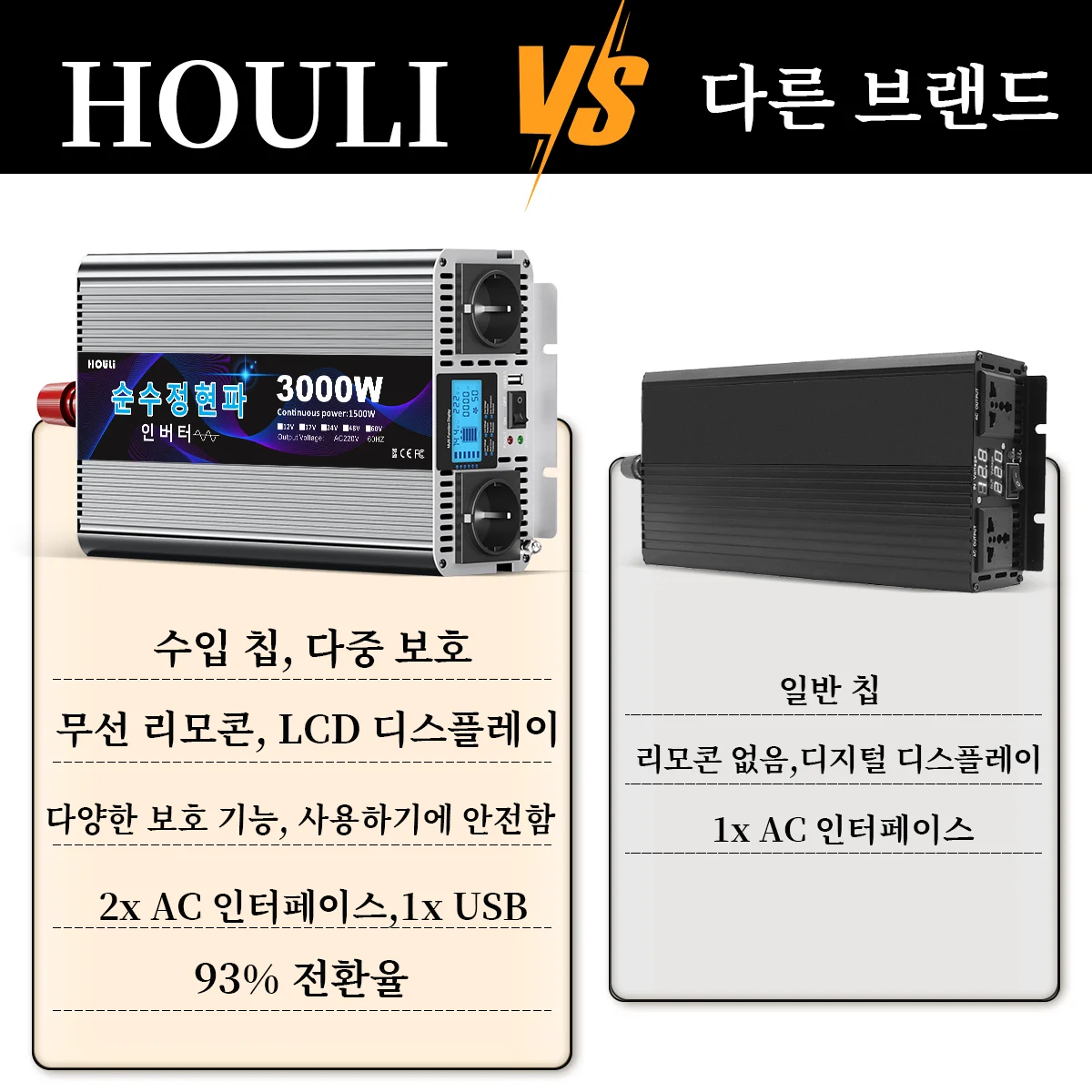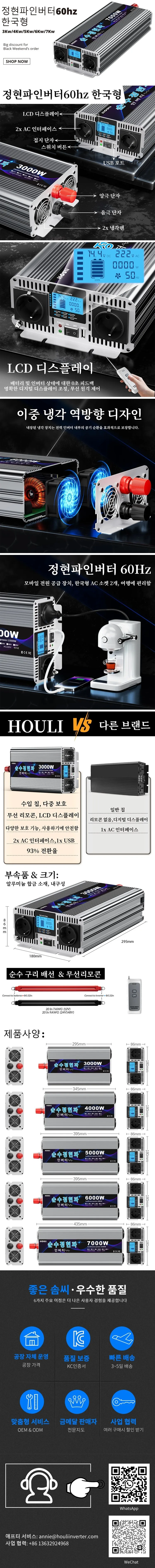 기는 안정적인 전원 공급을 위해 설계되었습니다. 정현파 출력을 통해 다양한 장치, 특히 고전압 요구 장치에 적합하며, 높은 전력 효율로 에너지 소비를 줄이고 안정된 출력을 유지하여 장치의 손상을 방지합니다. 또한, 과부하, 단락 등의 이상 상황에서 자동으로 보호하는 보호 기능과 휴대성을 갖추고 있습니다.