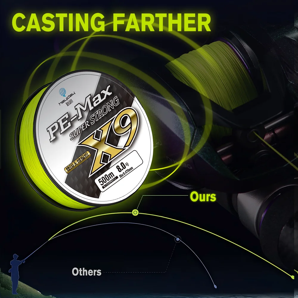 Germany Advanced seamless braided technology for 9 Strands Braided Fishing Line has a substantial increase in braided line roundness,density,strength and cutting water ability.