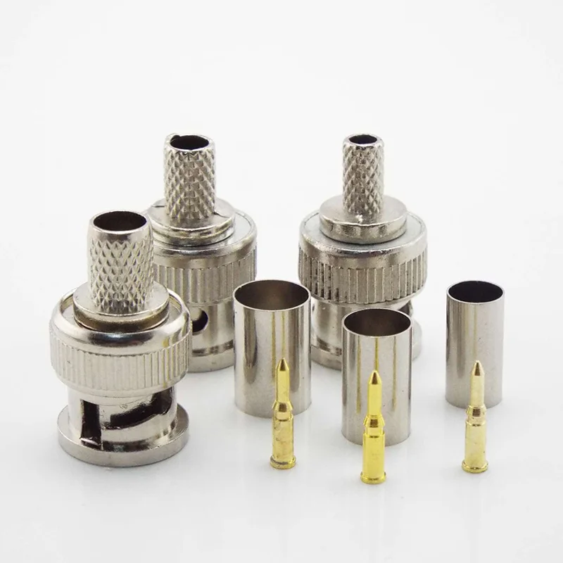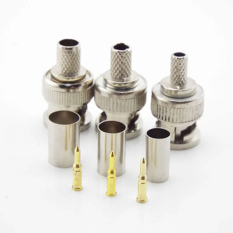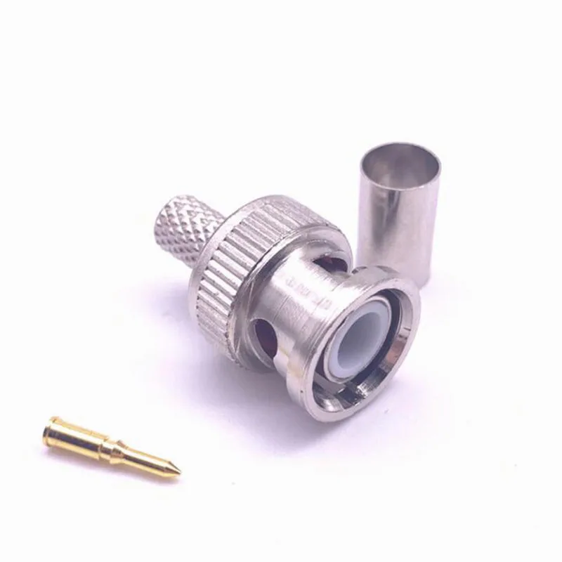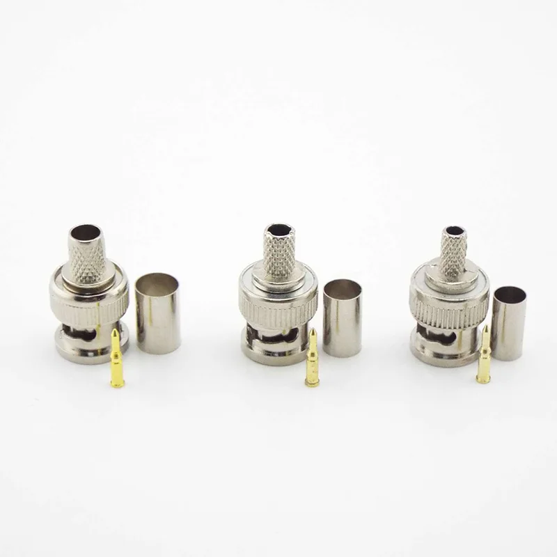 BNC ชาย CRIMP Type Connector ปลั๊กอะแดปเตอร์สําหรับกล้องวงจรปิด BNC หญิง Coupler Connector RG58 RG59 RG60 สาย