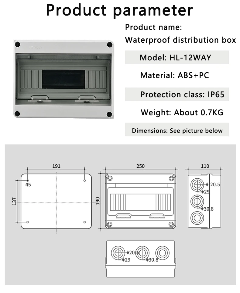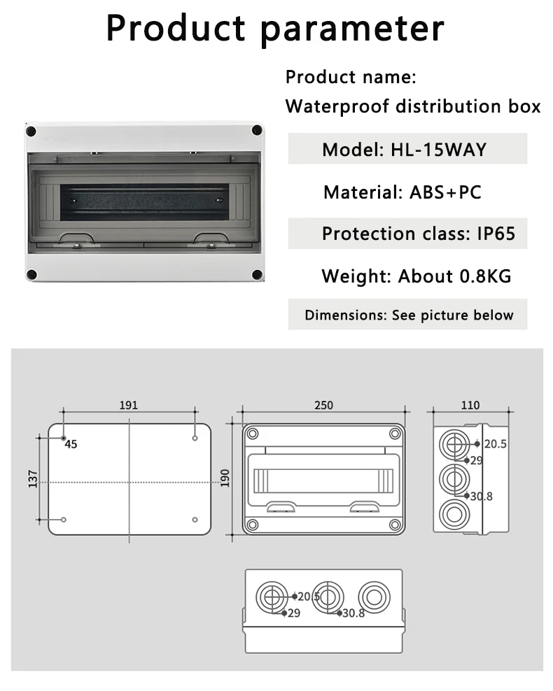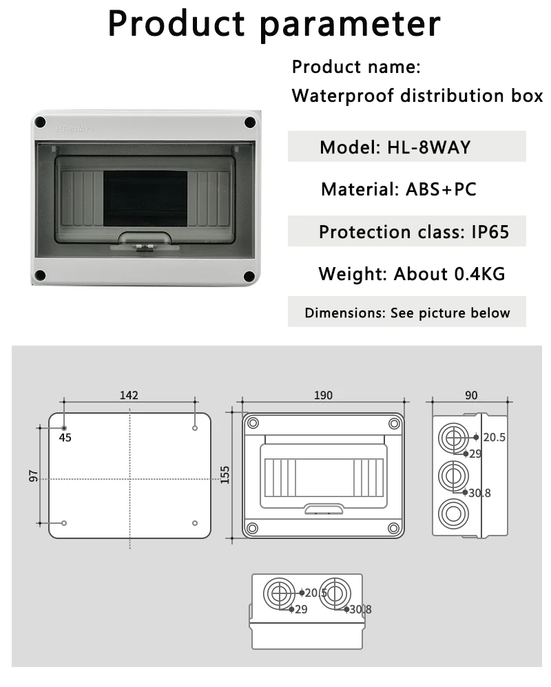 HT series distribution box use high-quality fire-resistant and PC materials reach IP65 protection Degree. Can be used in outdoor environment to protect the heavy weather.