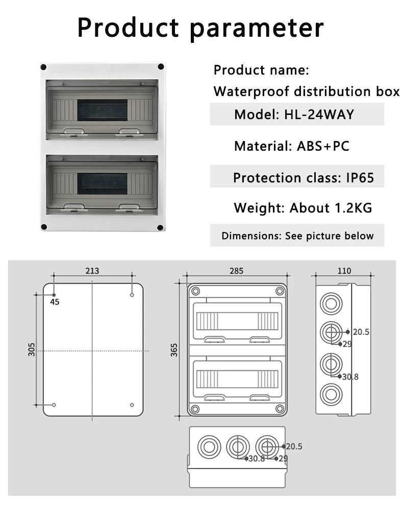 HL Series 5/8/12/15/18/24 Ways IP65 Waterproof Distribution Box Electrical Circuit Breaker PC ABS Plastic MCB Power Junction Box