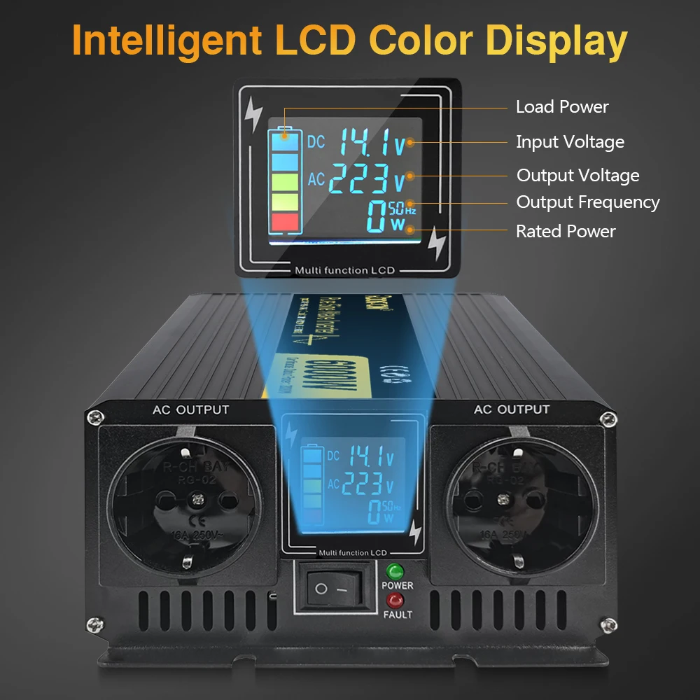 4000Wรถแปลงกระแสไฟฟ้าอินเวอร์เตอร์อะแดปเตอร์12Vถึง110/220Vแรงดันไฟฟ้าจอแสดงผลLEDเครื่องใช้ในบ้านรถDual USB