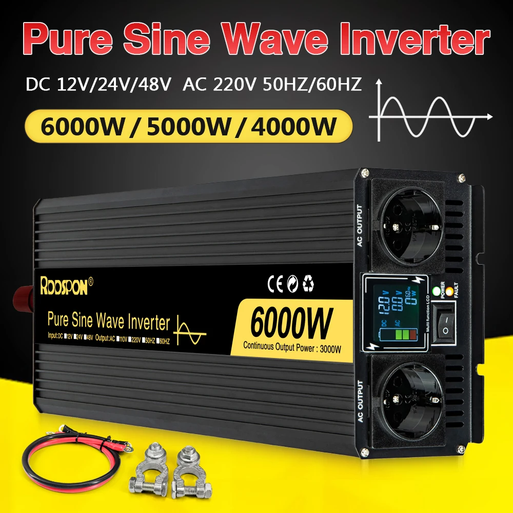RDDSPON Pure Sine Wave อินเวอร์เตอร์ 4000W 5000W 6000W DC 12V 24V 48V To AC 220V 50Hz 60Hz แบบพกพา Power Bank แรงดันไฟฟ้า Converter