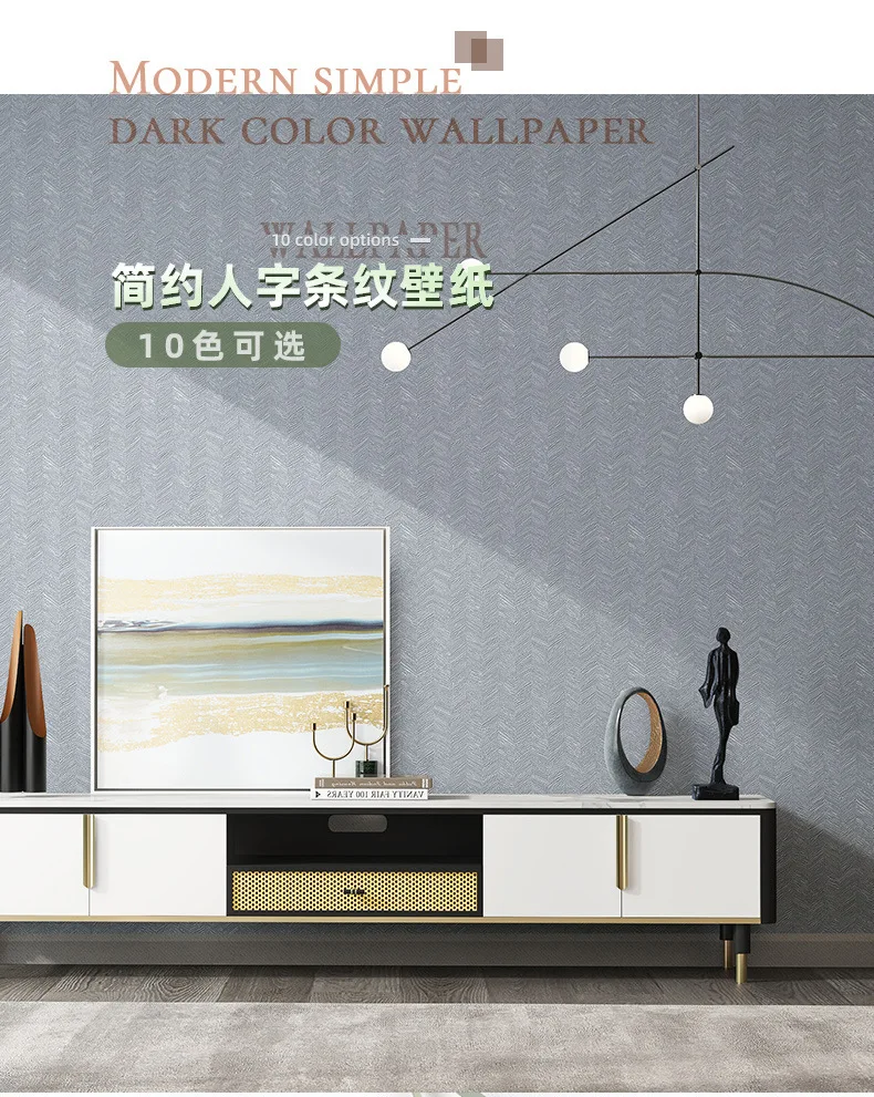 วอลเปเปอร์ผ้าลินินธรรมดารูปแบบก้างปลาห้องนอนห้องนั่งเล่นพื้นหลังวอลล์เปเปอร์กระดาษผนังตกแต่งบ้าน