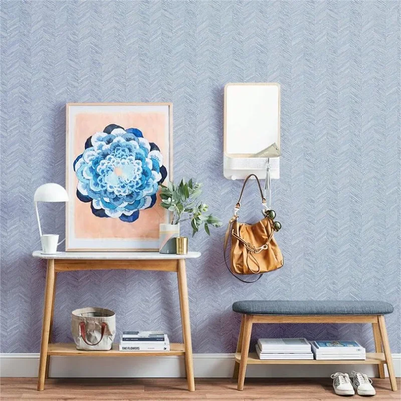 วอลล์เปเปอร์ผ้าลินินธรรมดาที่มีรูปแบบก้างปลาห้องนอนห้องนั่งเล่นวอลล์เปเปอร์ผนังการตกแต่งบ้าน