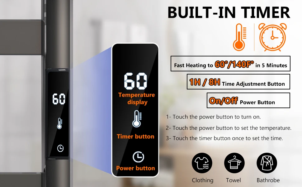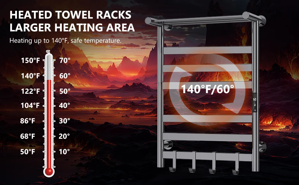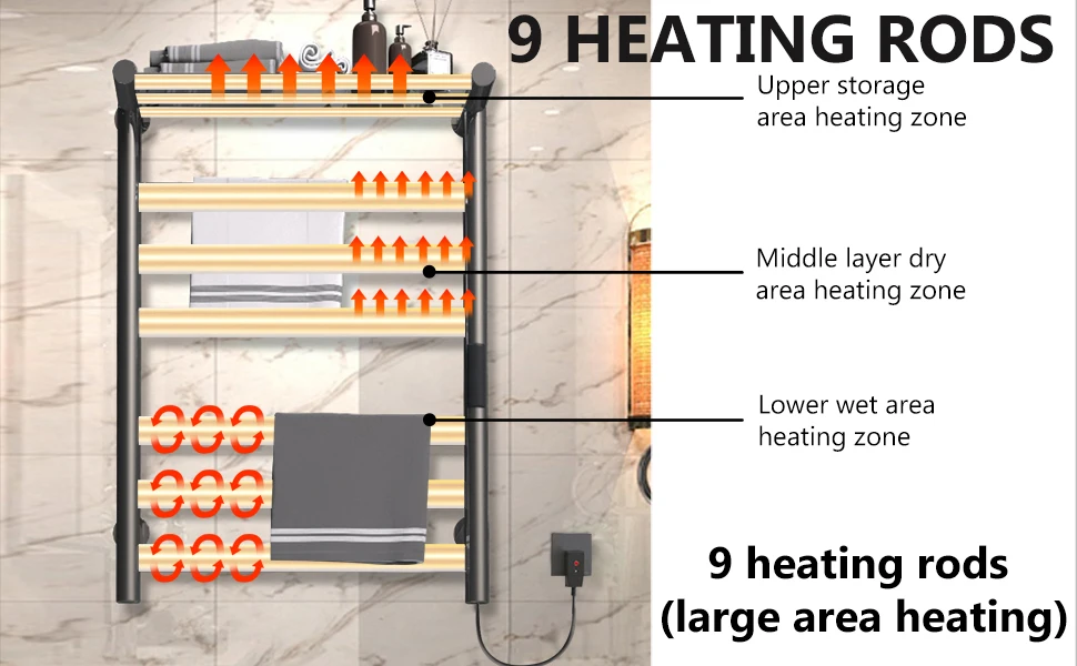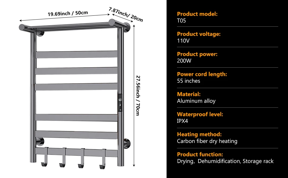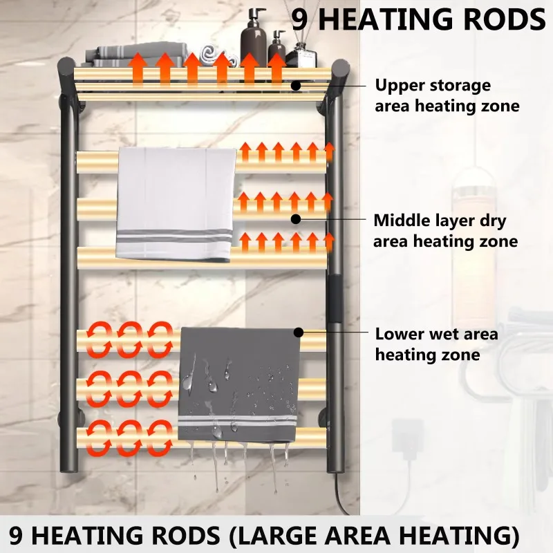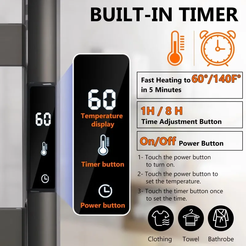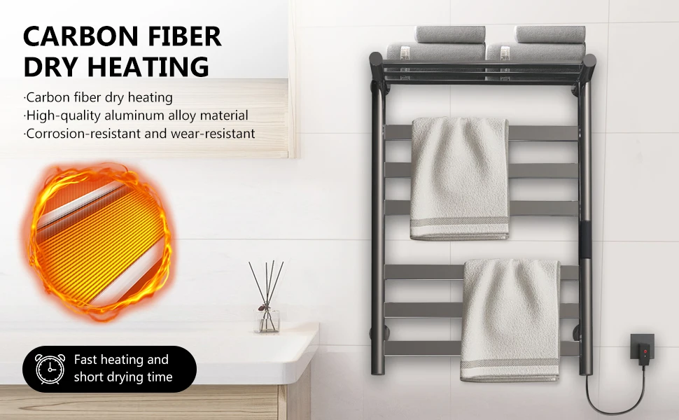 ราวแขวนผ้าเช็ดตัวอัจฉริยะพร้อมเครื่องทำความร้อน – ติดผนัง ทำจากอะลูมิเนียมอัลลอยด์ ใช้ไฟฟ้า