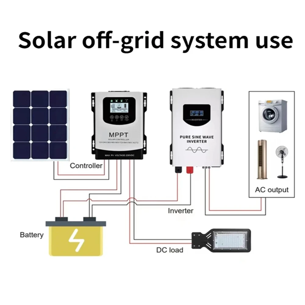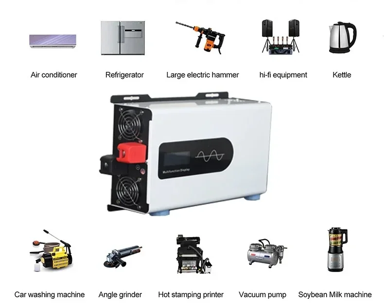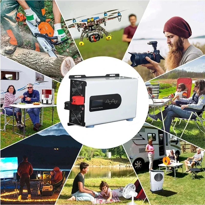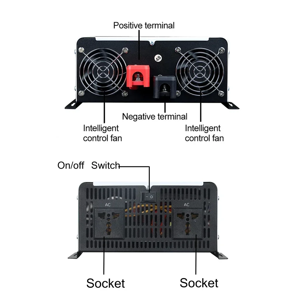 อินเวอร์เตอร์แปลงไฟแบบคลื่นไซน์ปรับแต่งได้อเนกประสงค์ 4000 วัตต์ 12 โวลต์ เป็น 220 โวลต์ สำหรับใช้งานกลางแจ้งแบบออฟกริด พร้อมพอร์ตชาร์จ USB 2 ช่อง