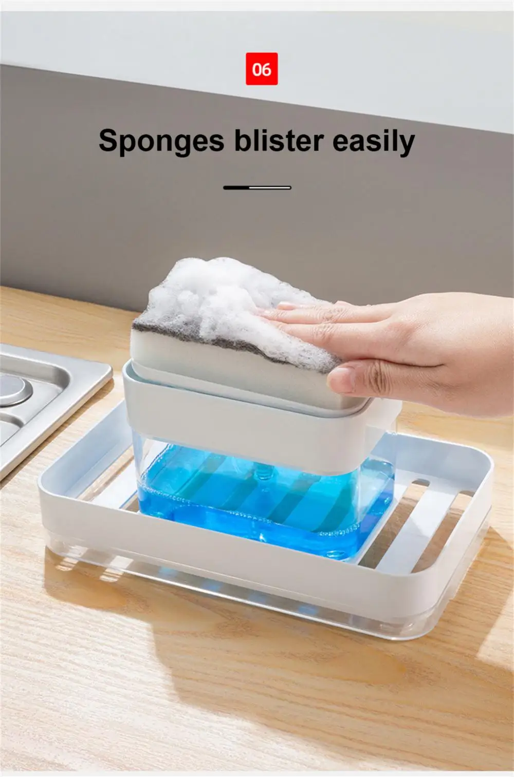 – วิธีการใช้งาน: เติมน้ํายาล้างจานที่คุณชื่นชอบขนาด 13 ออนซ์ จากนั้นใช้ฟองน้ําที่ให้มากดลงบนปั๊ม ซึ่งจะจ่ายสบู่ล้างจานในปริมาณที่เหมาะสมลงบนฟองน้ํา เมื่อคุณต้องการมากกว่านี้ เพียงปั๊มสบู่อีกครั้ง