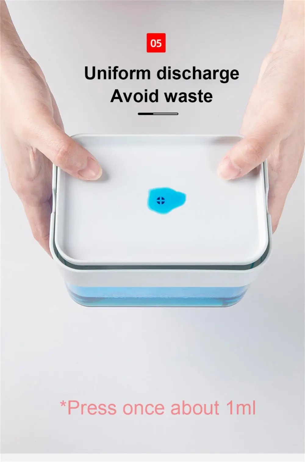 – การจ่ายสบู่ที่แม่นยําและง่ายดายและความจุขนาดใหญ่: จ่ายสบู่ในปริมาณที่เหมาะสมลงบนฟองน้ํา ใช้งานง่ายมาก