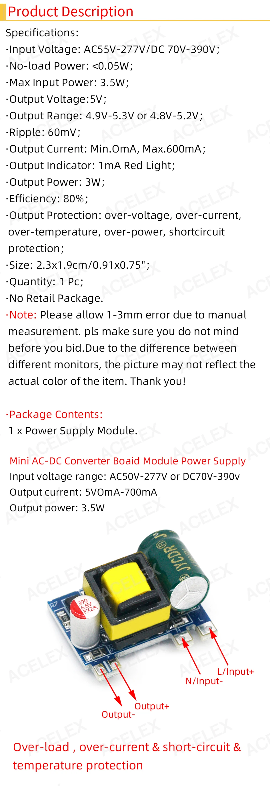 ขายร้อนMini AC-DC 110V 120V 220V 230V 5V 12V Converterโมดูลแหล่งจ่ายไฟสวิทช์แยกโมดูล
