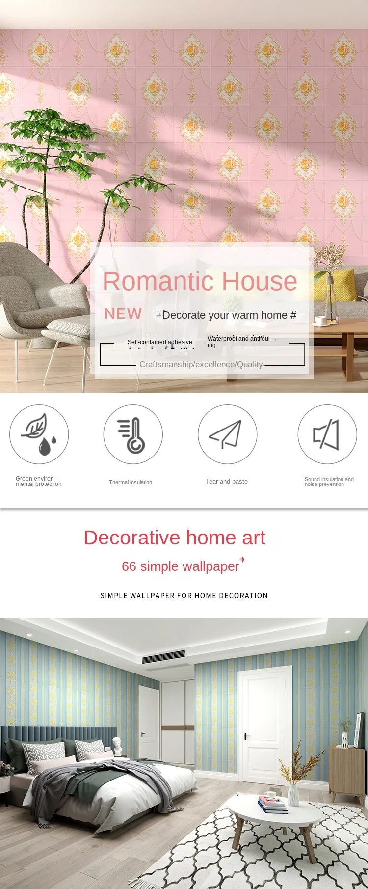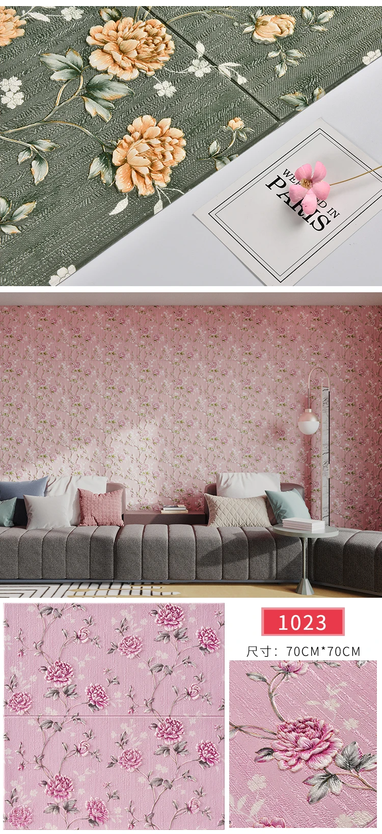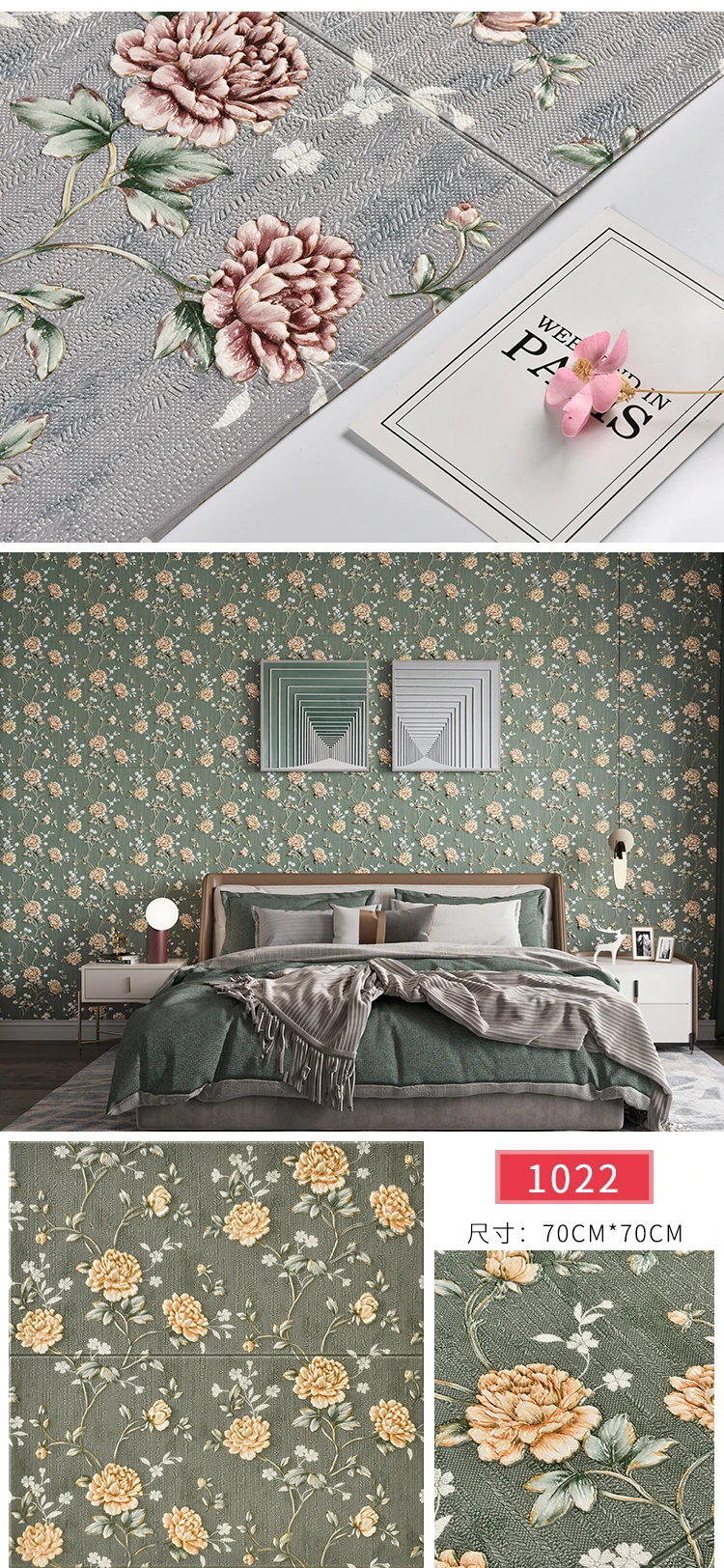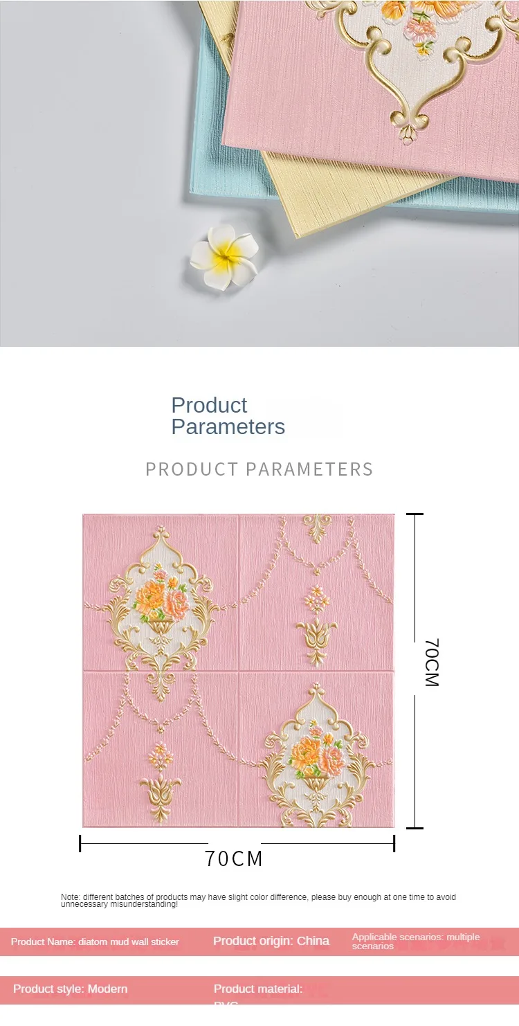 สติ๊กเกอร์ติดผนังสามมิติวอลล์เปเปอร์แบบมีกาวในตัว 3 มิติไม่ได้เป็นเพียงการตกแต่งในพื้นที่ของคุณ แต่เป็นข้อพิสูจน์ถึงความคล่องตัวและความทนทานสติกเกอร์ติดผนังเหล่านี้ผลิตจากวัสดุ EPP คุณภาพสูง ได้รับการออกแบบมาให้ทนทานต่อความรุนแรงในชีวิตประจําวัน ในขณะที่ยังคงรักษารูปแบบดอกไม้ที่มีชีวิตชีวาไว้การรักษาพื้นผิวนูนช่วยเพิ่มมิติสัมผัสให้กับวอลเปเปอร์ เพิ่มความดึงดูดสายตา และทําให้ห้องนี้โดดเด่นในทุกห้อง