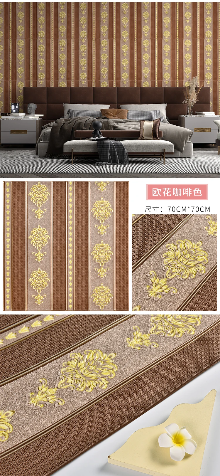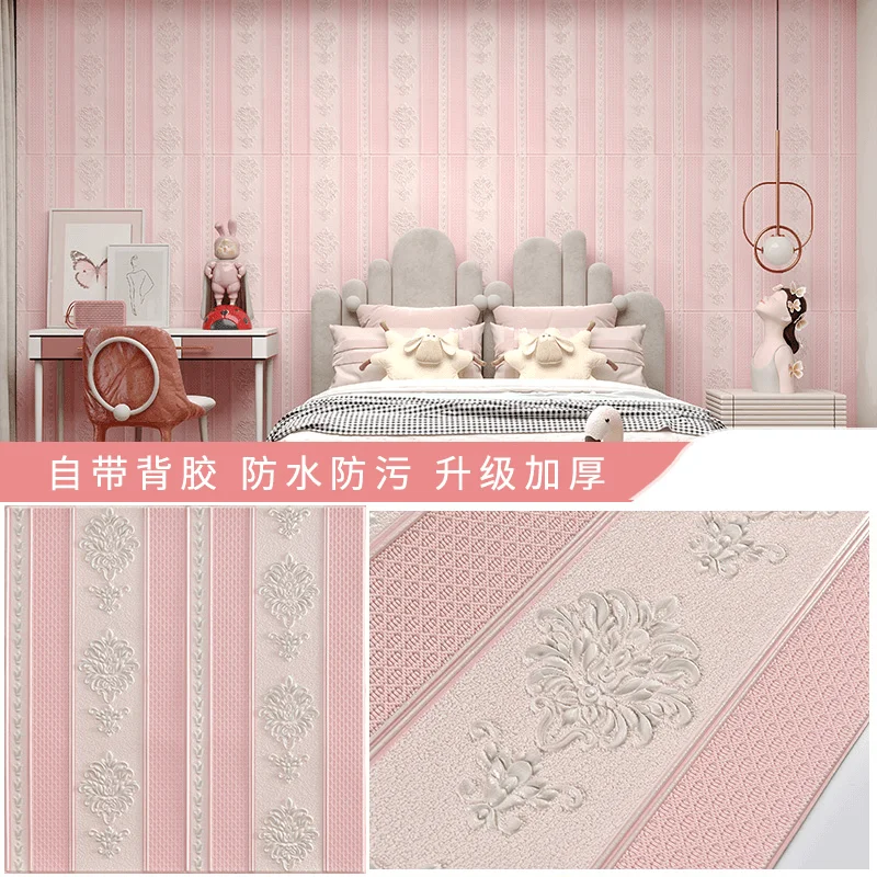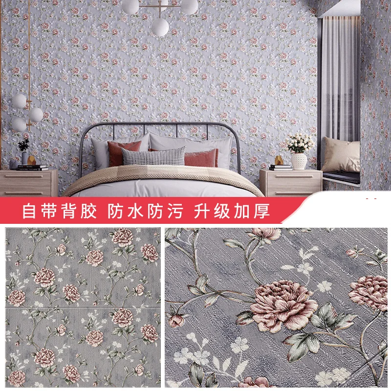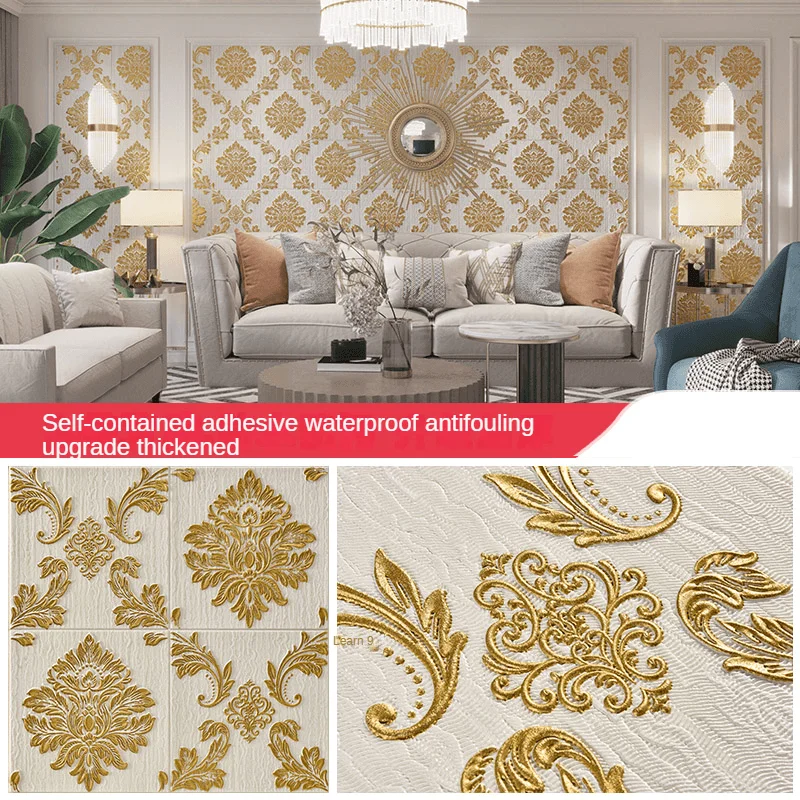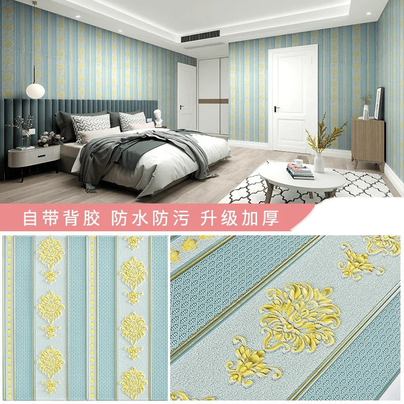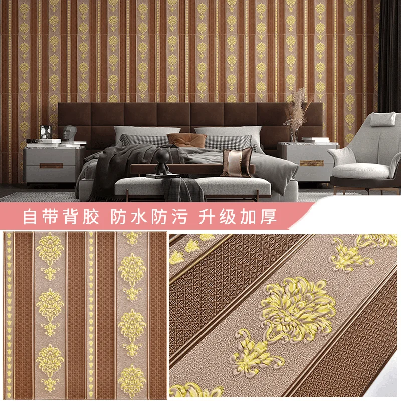 ยุโรป Self-กาววอลล์เปเปอร์ 3D สติ๊กเกอร์ติดผนังห้องนอนห้องนั่งเล่นพื้นหลังวอลล์เปเปอร์กันน้ํา Wall WARM Decor หนา 5.5 M