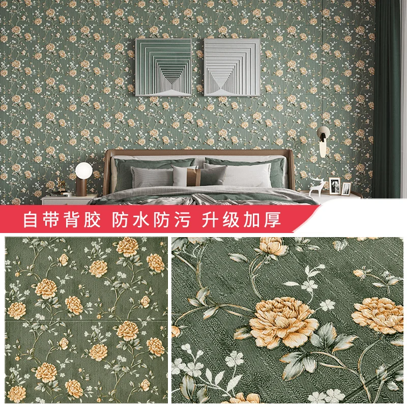 Wallpaper PVC วอลเปเปอร์ติดผนังพื้นหลังแบบย้อนยุคชนบทมีกาวในตัว hiasan kamar สำหรับห้องนอนห้องนั่งเล่นกันน้ำวอลล์เปเปอร์มีกาวในตัว