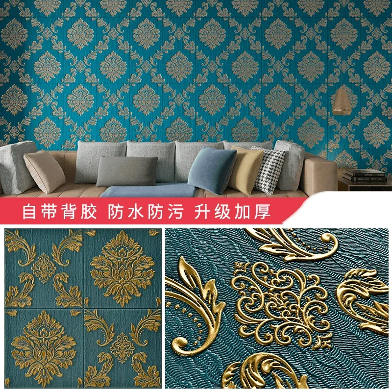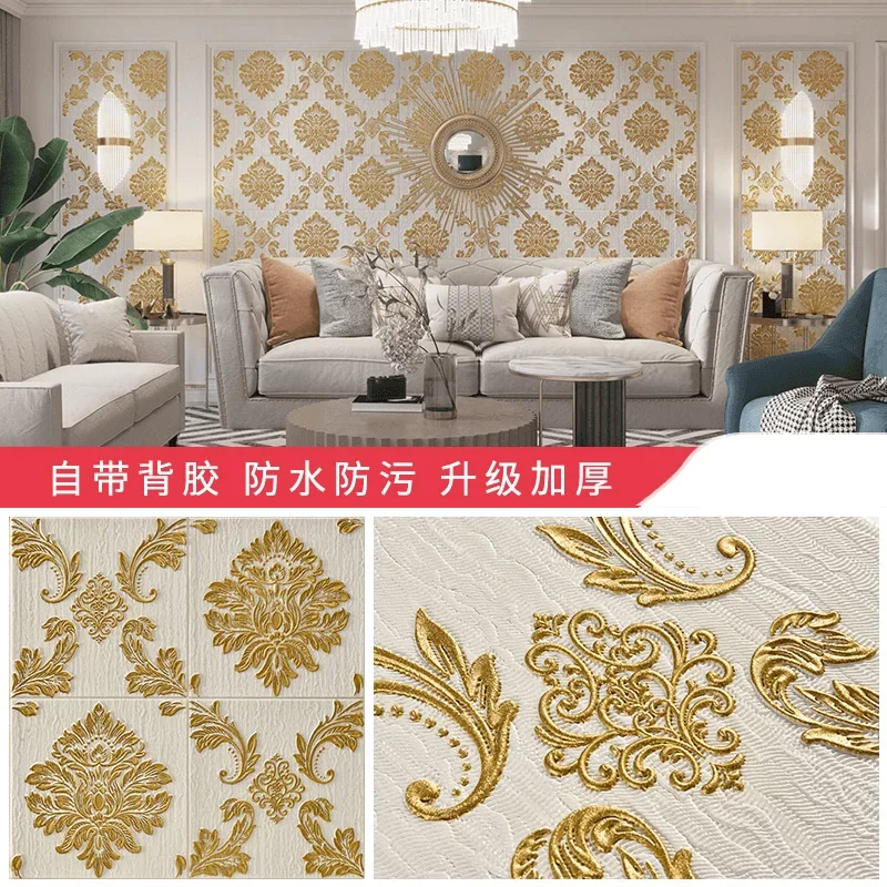 ยุโรป Self-กาววอลล์เปเปอร์ 3D สติ๊กเกอร์ติดผนังห้องนอนห้องนั่งเล่นพื้นหลังวอลล์เปเปอร์กันน้ํา Wall WARM Decor หนา 5.5 M