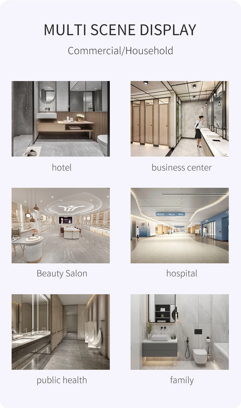 ก๊อกน้ำในห้องน้ำพร้อมหน้าจอดิจิตอล อ่างล้างหน้าแบบมีก๊อกน้ำร้อนและน้ำเย็น ตู้ห้องน้ำ อ่างล้างหน้าสีเทาเมทัลลิก