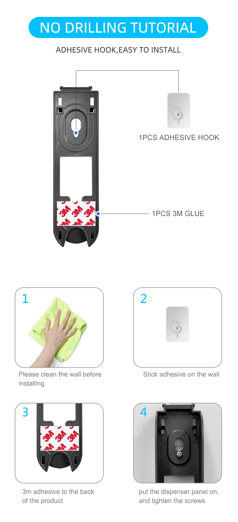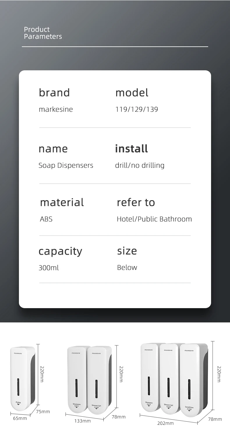 ที่จ่ายสบู่เหลวแบบติดผนัง ขนาด 300 มล. คุณภาพสูง พร้อมปั๊มและตกแต่งผนัง