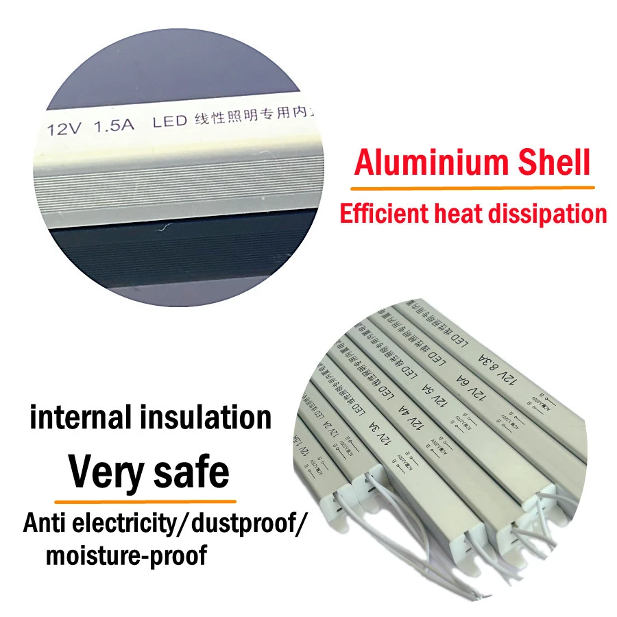 Strip แหล่งจ่ายไฟ 100W AC 220V TO DC 12V 24V IP20 กันน้ํากันฝุ่นอลูมิเนียม Light Strip DRIVER Transformer