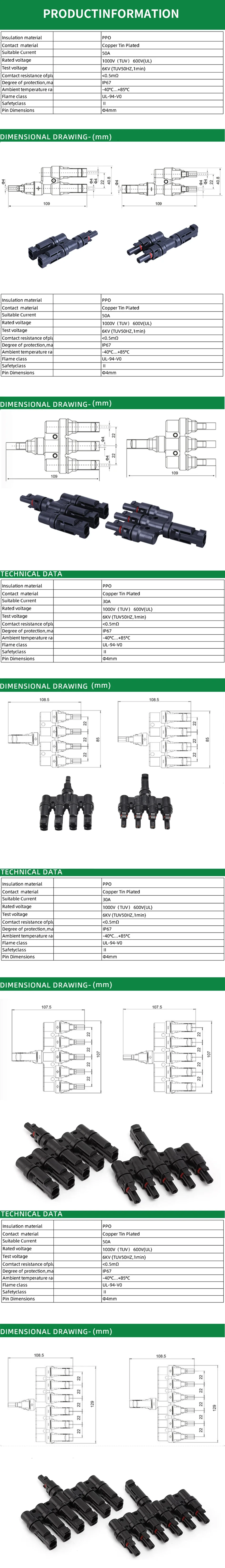 Photovoltaic Panel Cable Terminal 3T 4T 5T 6T 7T Solar PV Connector 30A 1000V Photovoltaic Wire Connector 3Y 4Y 5Y