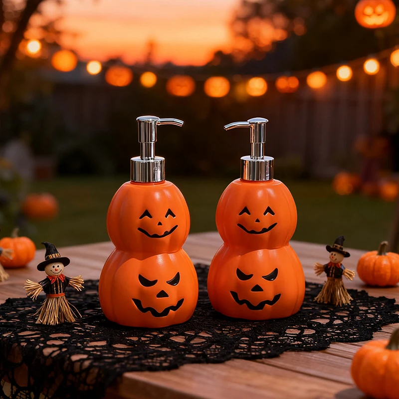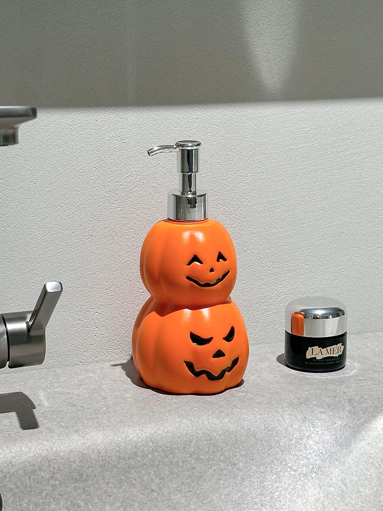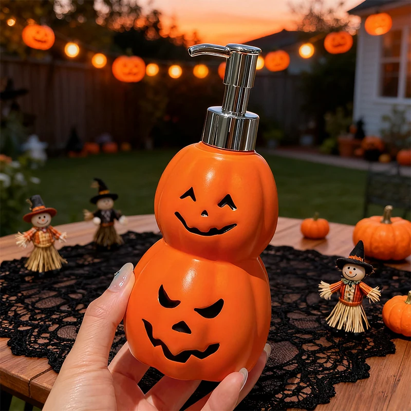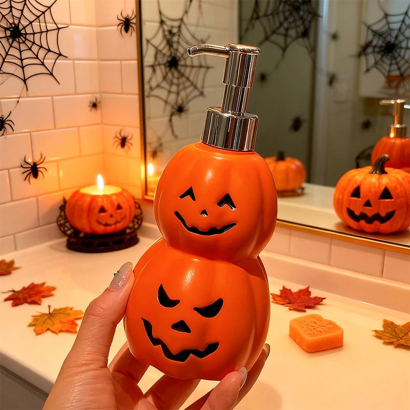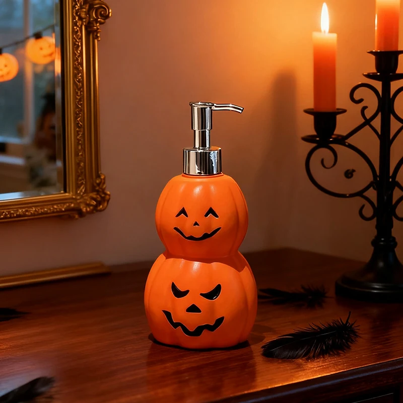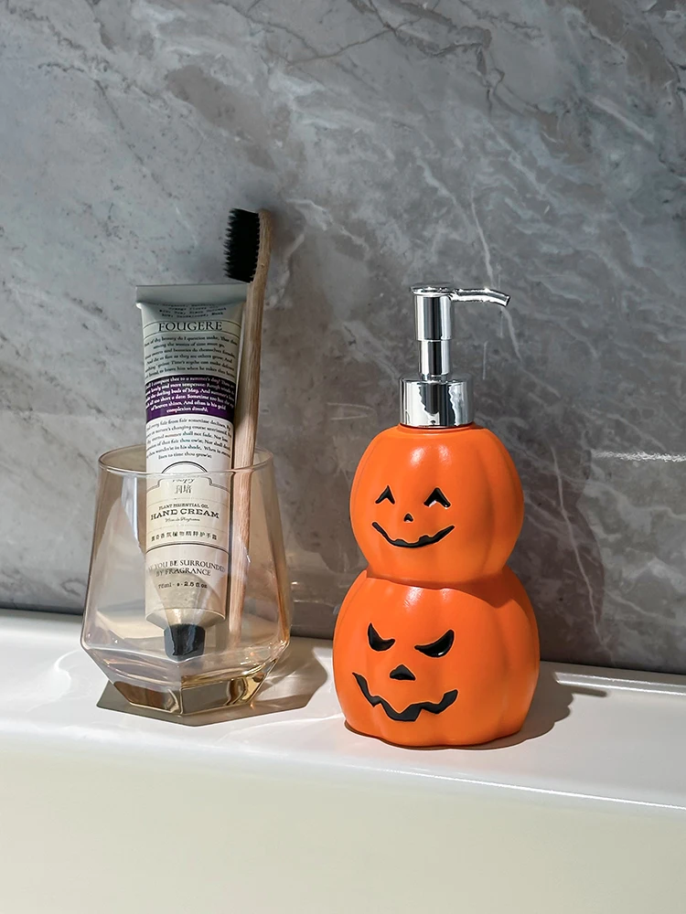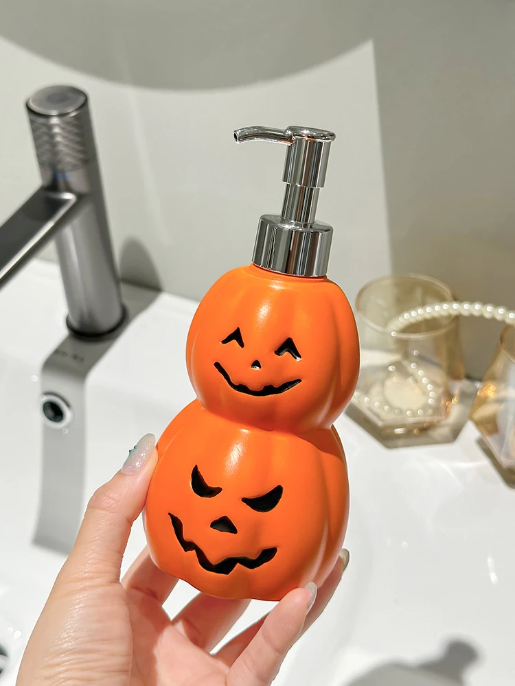 ขวดสบู่รูปฟักทองหน้าผีสุดสร้างสรรค์ ขวดกดสบู่สำหรับใช้ในบ้าน ขวดล้างมือ ขวดเจลอาบน้ำในห้องน้ำ ของตกแต่ง