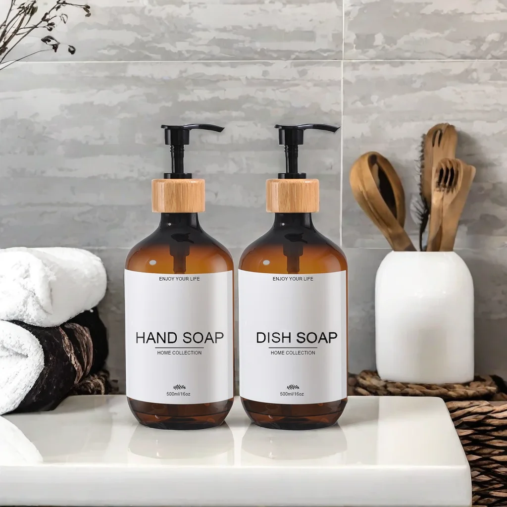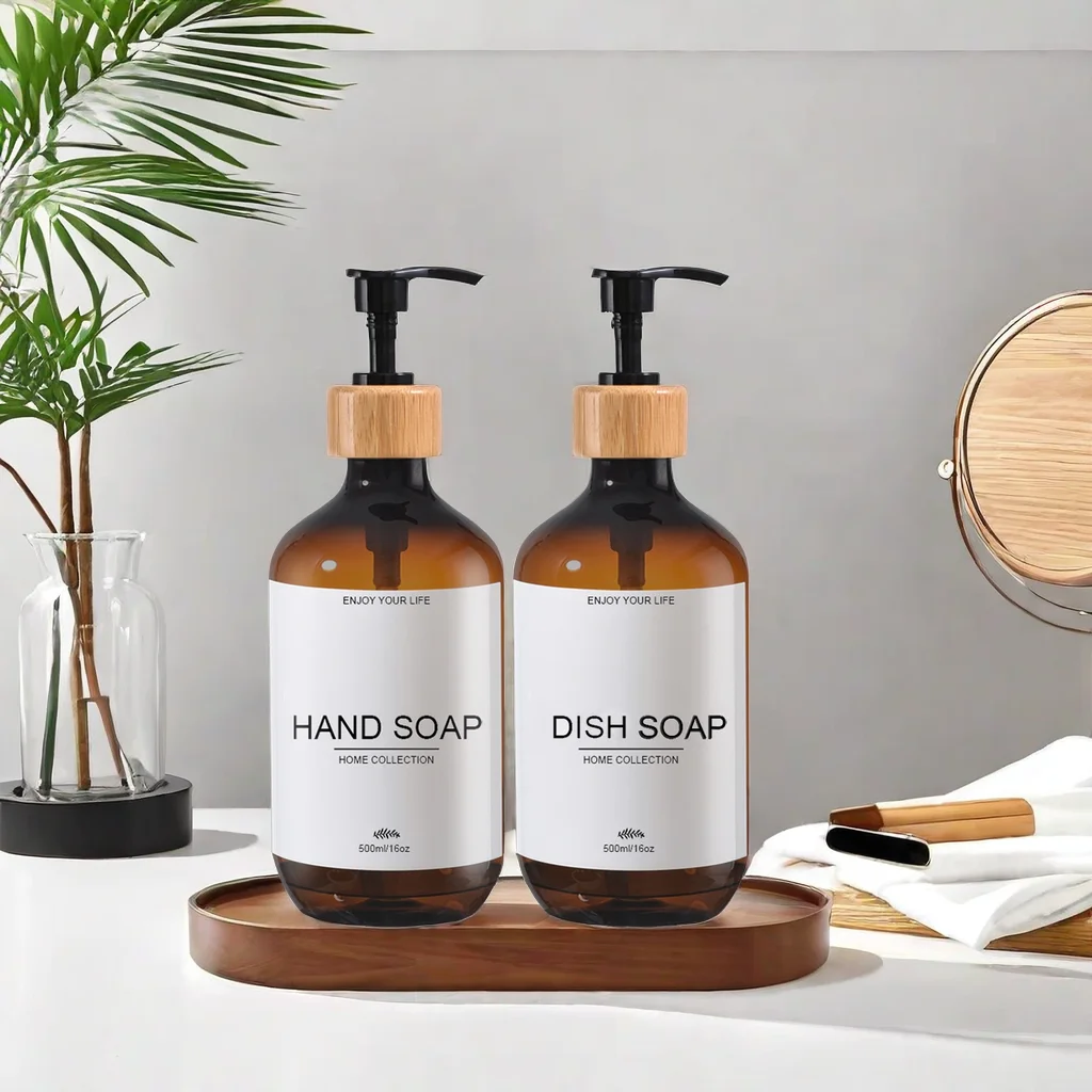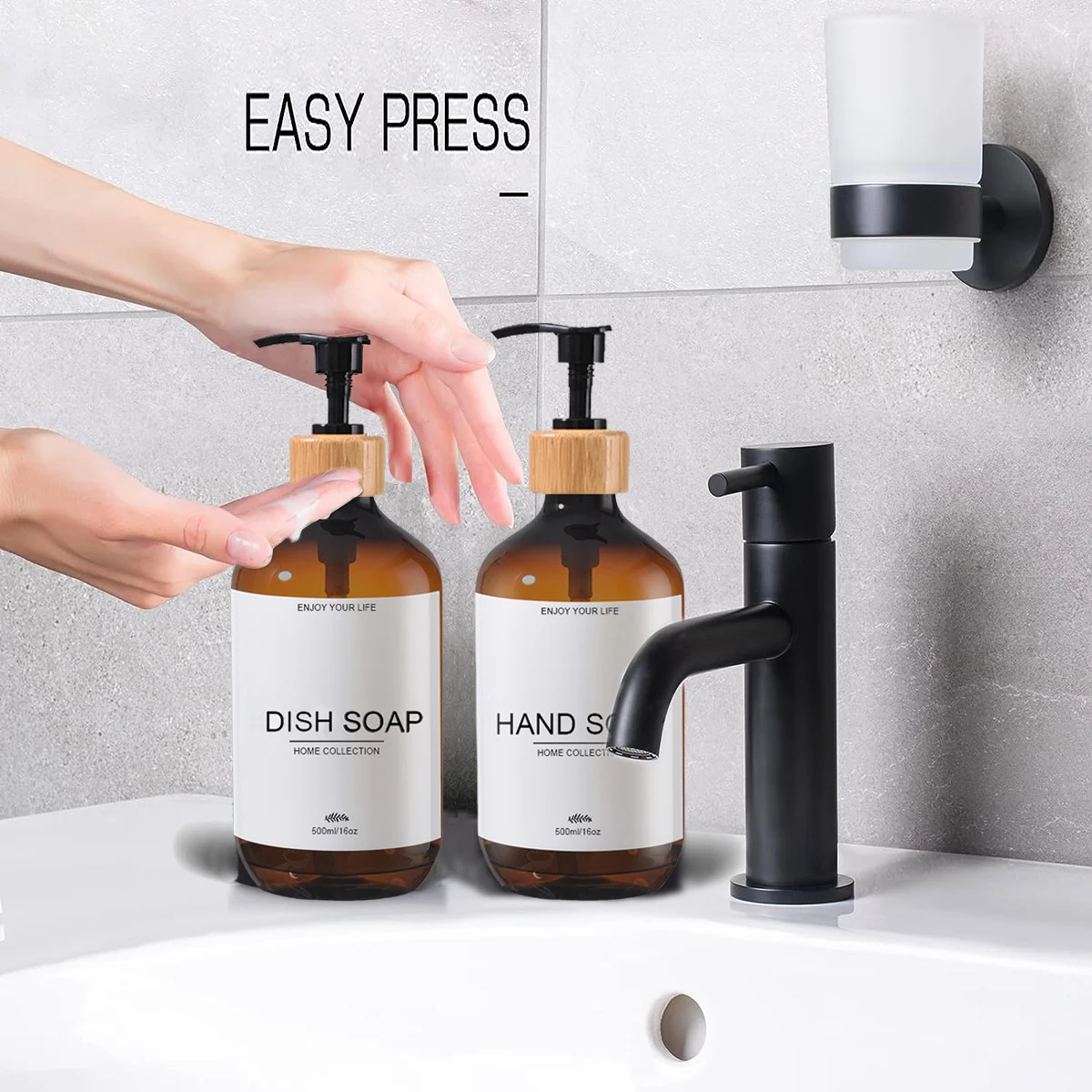 เครื่องจ่ายสบู่เหลวมือและจานสบู่ครัวขวดปั๊มพร้อมถาดเครื่องจ่ายสบู่เคลือบสําหรับห้องครัวตกแต่งห้องน้ํา