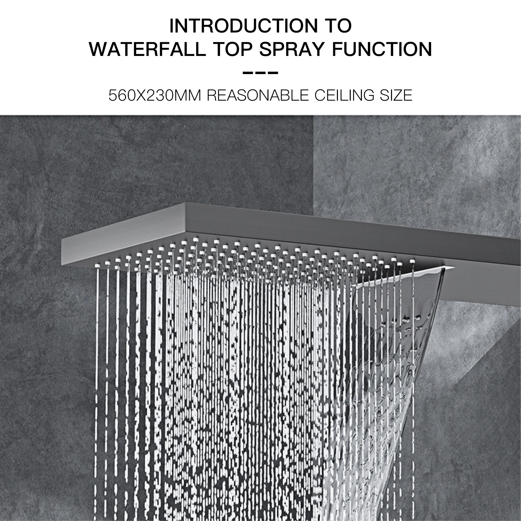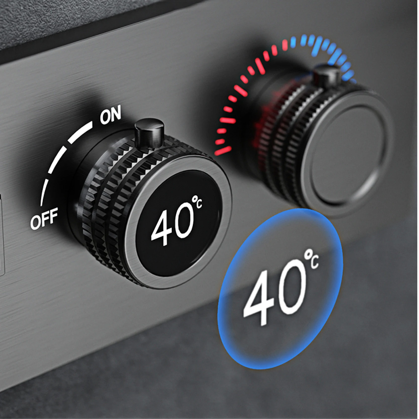 ชุดฝักบัวระบบดิจิตอลอัจฉริยะพร้อมจอแสดงผล พร้อมเอฟเฟกต์แสงไฟสร้างบรรยากาศ แบบกดปุ่มคล้ายคีย์เปียโน ระบบฉีดน้ำแรงดันสูง สำหรับใช้ในบ้าน