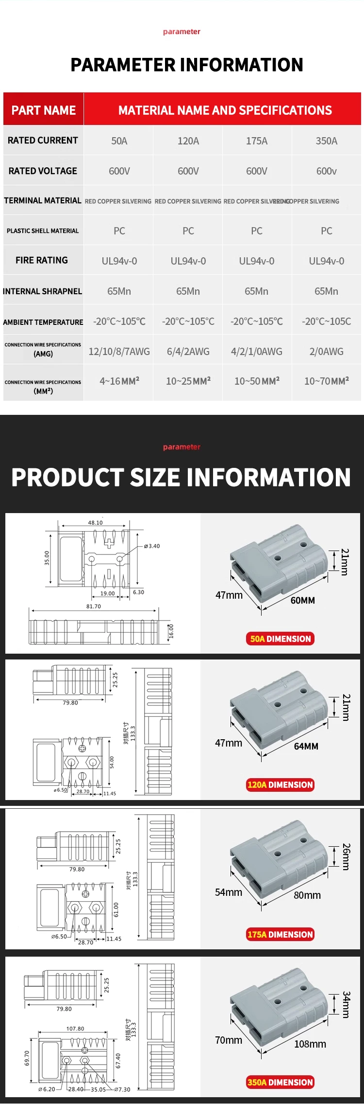 5/20/100Pcs Anderson สไตล์ Quick Connector 50A/120A/175A/350A แบตเตอรี่ปลั๊กชาร์จ Bipolar ทองแดงเงิน High Current